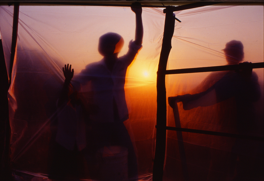 I discovered many of these images as the result of access gained through my work as a commercial photographer. Driving along the Mecca Slope, in the Coachella Valley, you have no idea that people are living in burned-out vans surrouned by lush vineyards or that there are provisional camps hidden in neighboring citrus orchards. Walking the streets of any small farm town, there are few clues that many garages in otherwise normal-looking housing tracts are barracks with six or more bunks, a hot plate, and a shower outside rigged to a garden hose; or that income from those barracks often makes the difference for slightly better-off farmworkers living on the margin. Ironically, grower-maintained labor camps offer some of the best temporarry housing in the state, but are increasingly rare. Of all the camps, those run by the state of California and as private, farmworker coopertaives are by far the best. One or two even have swimming pools. When I photograph farmworkers living in the bushes, backyards, and gutted vans, I never supply the images to local newspapers, no matter how raw or exploitative the conditions. To do so is to hurt more than help. If you create a stink, no matter what you find, it always works gainst farmworkers. With the uproar inspectors arrive. Camps and barracks are shut down and bulldozed. And farmworkers move to even worse housing. Laws only go so far. What will make the difference? A union and the end of the oversupply of labor created by endless waves of desperate, first-generation immigrants. Absent those changes, thousands of farmworkers will continue to bring in the harvest while camped in the bushes, under the trees, beneath billboards -- anywhere there is shade and water.