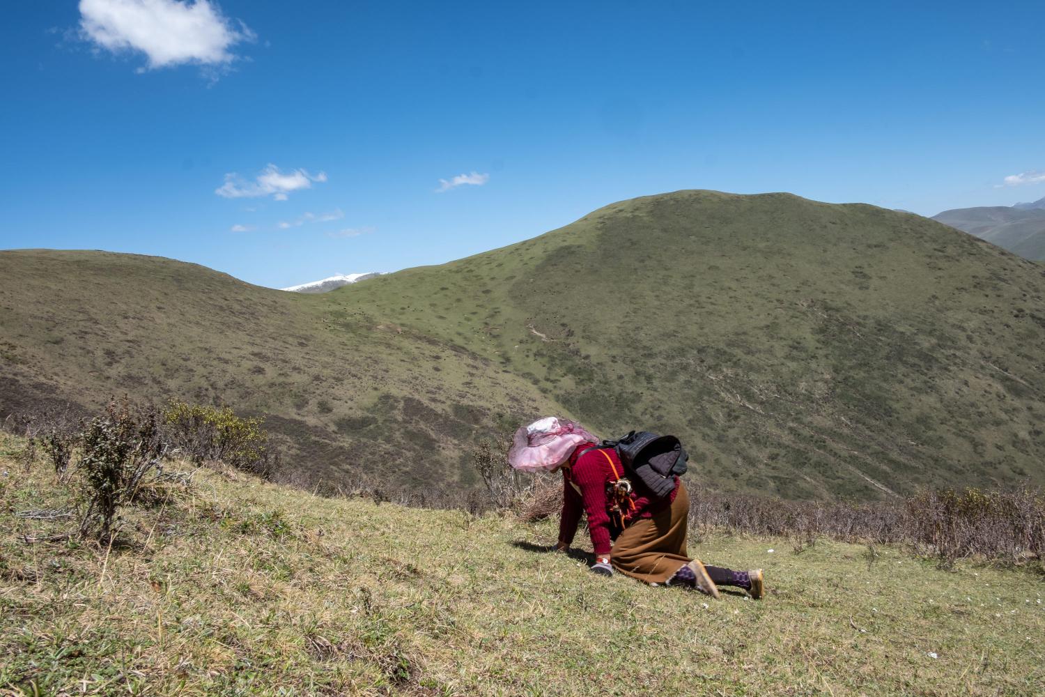 Late spring is the beginning of the season of nomadic life. Jamyang Tsomo will take yaks and horses high into the mountains and live at a camp for months at a time. The little valley nestled among the peaks is home to tents with dozens of women and the area comes alive with smells of campfires and milk. Work and life are labor-intensive and after the yaks are milked and sent to graze, the women spend the remaining hours of light on their hands and knees harvesting Tibetan fungus caterpillars: the mummified moth larvae that has been taken over by a fungus thrives at the high altitudes of the Himalayas. The dried worm is eventually sold as a valuable Chinese medicine.