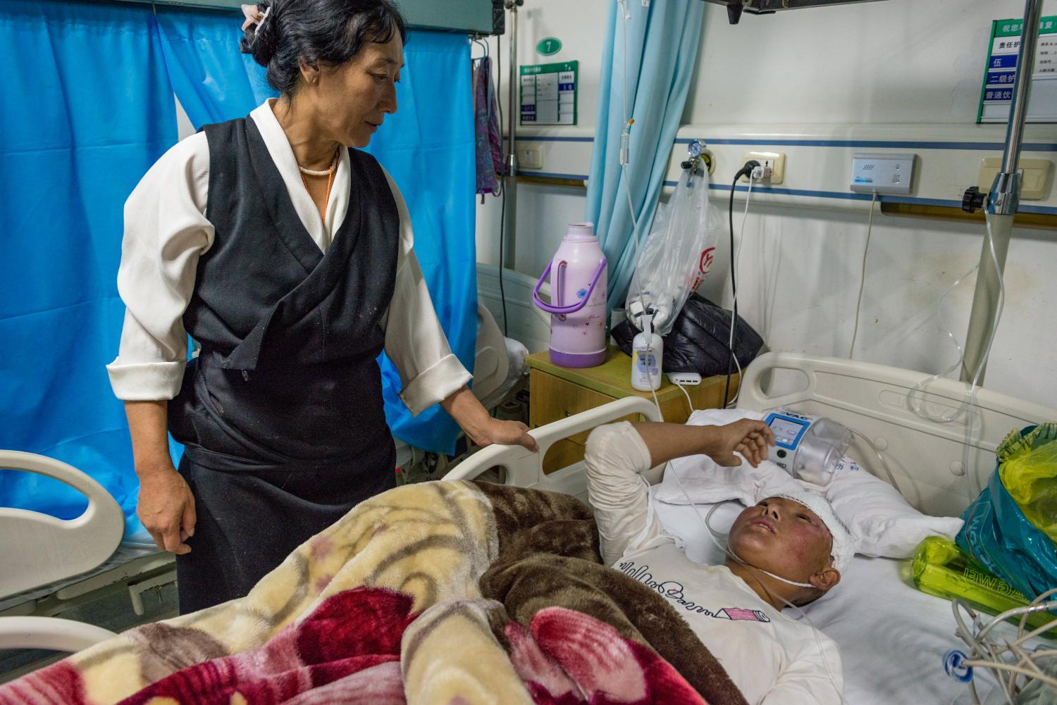 Summer is the season to harvest barley; a staple of the Tibetan diet. The grain is finely milled and then prepared in a small bowl with tea and butter to create a staple food called “tsampa.” During the 2017 barley harvest Jamyang Tsomo fell off the back of a tractor and suffered a severe injury that removed enough skin to expose her skull. Without a hospital nearby, she had to travel two days by car to the city of Chengdu for three emergency skin grafts on her forehead. Besides her pain and distress at the time, she also couldn’t communicate with the Han doctor who spoke in Mandarin. And her illiteracy prevented her from writing her name; other Tibetan patients and visitors helped her communicate. Chinese hospitals can pose problems for ethnic minorities such as Tibetans. In some instances, patients use another person’s government ID or bribe hospital staff for treatment. In addition to her limited access to healthcare and the benefits of a social welfare system, Jamyang Tsomo was never offered an education.