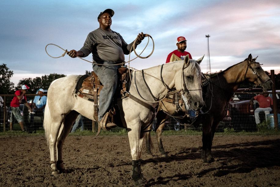 For me the best projects are always the ones that take me down a path that I had not initially expected or planned on. In February 2022, I had the good fortune to meet a group of Black rodeo cowboys who welcomed me into their small, tightknit community.. Over the course of the year, I spent many weeks with these men, women and families, watching them train, hearing their stories and traveling aound the state and beyond to photograph them competing, socializing and supporting each other, in a network of small towns scattered throughout the area. Despite the fact that rodeo does not provide anything close to a living wage for the vast majority of these men, it is central to every aspect of their deeply interconnected daily lives. Like most people, I came into this project with a certain romantic image of the American cowboy embedded in my head. These men both exemplify the American cowboy spirit, and defy the cliches most of us associate with it.