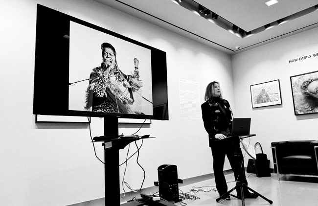 Top: Margo Cooper at Documentary Matters at the Leica Gallery Boston presenting her new book, Deep Inside the Blues.
