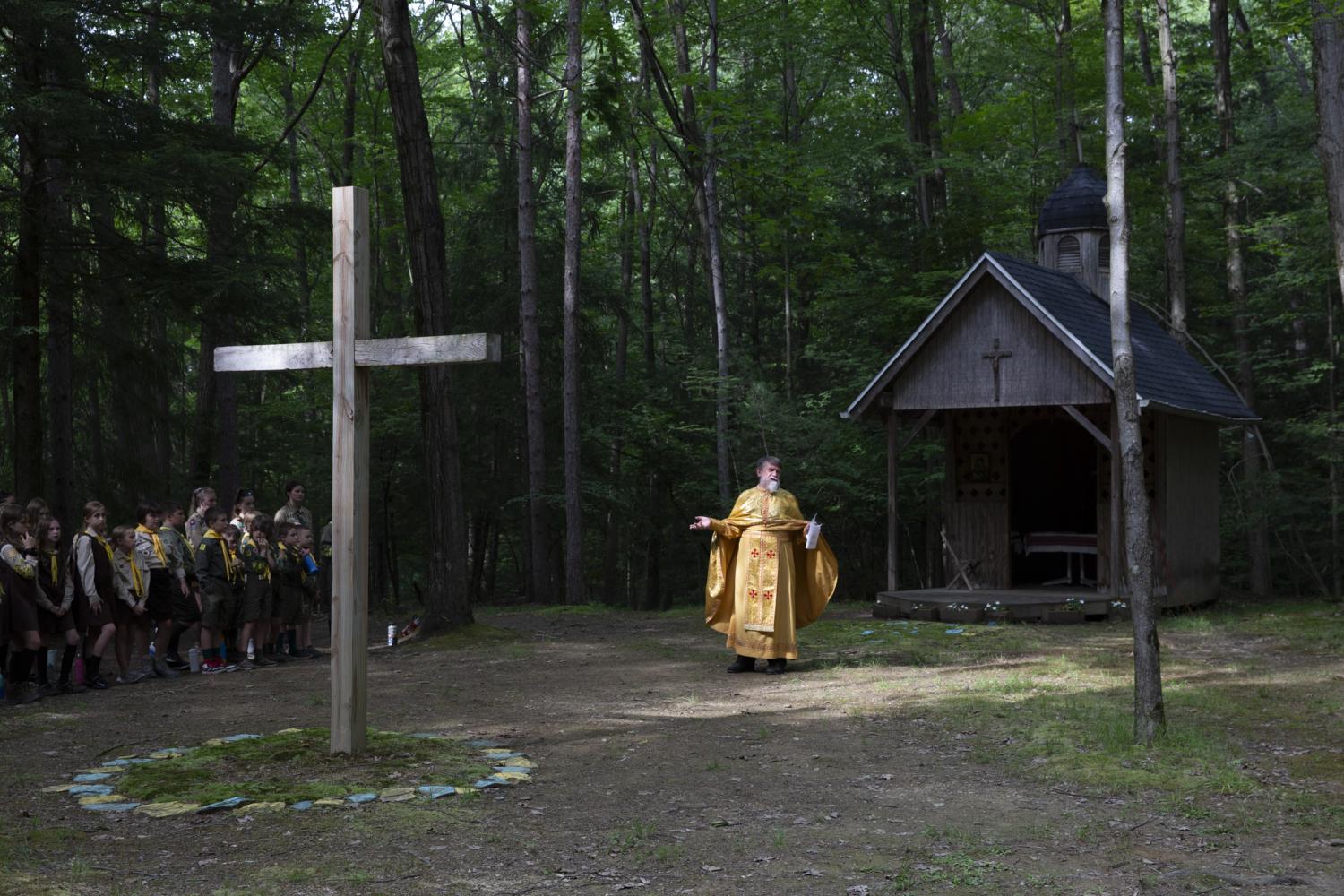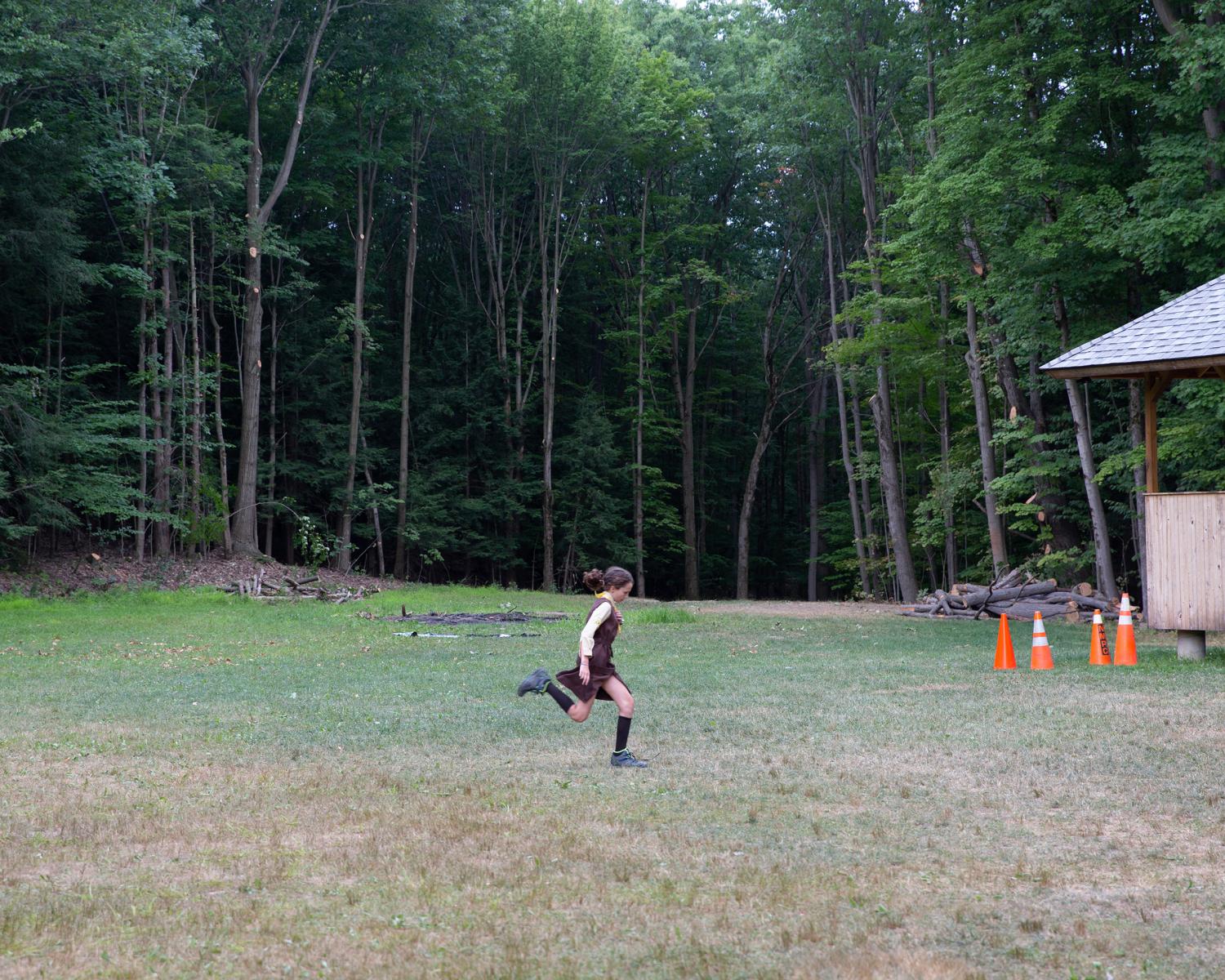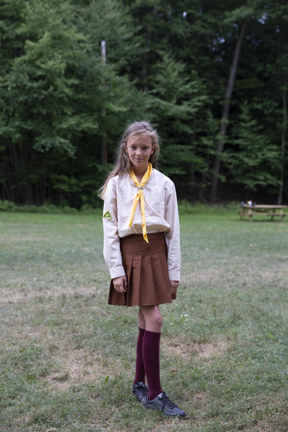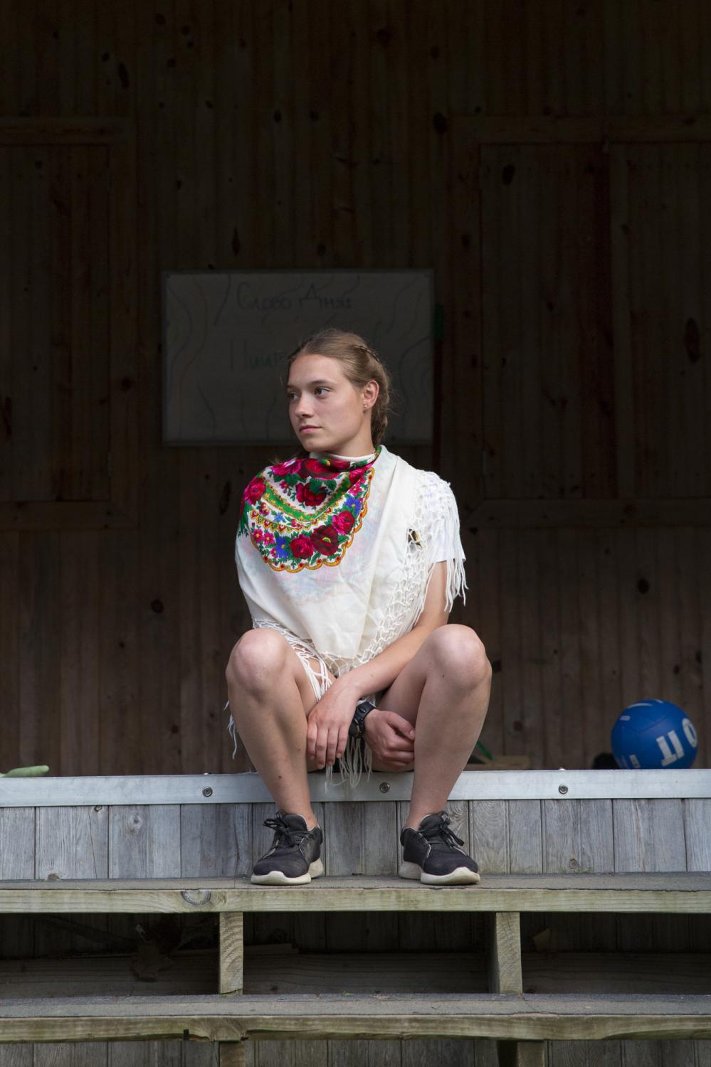 Novyi Sokil is a Ukrainian Plast summer camp outside of Buffalo, NY, where I spent over twelve formative years and it has been in operation since the 1950s. Despite the horrific attempts to cancel Ukrainian culture, the stewards of this camp represent a guiding force in preserving tradition. Through my photographs I study the parcel of land purchased by Ukrainian refugees generations ago so that they would always have a place to convene. It serves almost as a theater set where a changing cast of characters come to immerse themselves in scouting rituals. Attending Plast camp is a rite of passage for young Ukrainians in North America, and like any summer camp, there is fun, friends and bonding. But the tight grasp onto the deliberate, formal, conceptual structure of the scouting rituals, the celebration of the Ukrainian language, and the re-enacting of uniquely Ukrainian customs are part of the fight to hold onto a notion of home, the motherland: Ukraine.