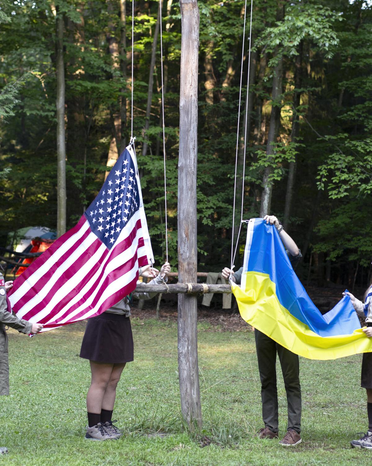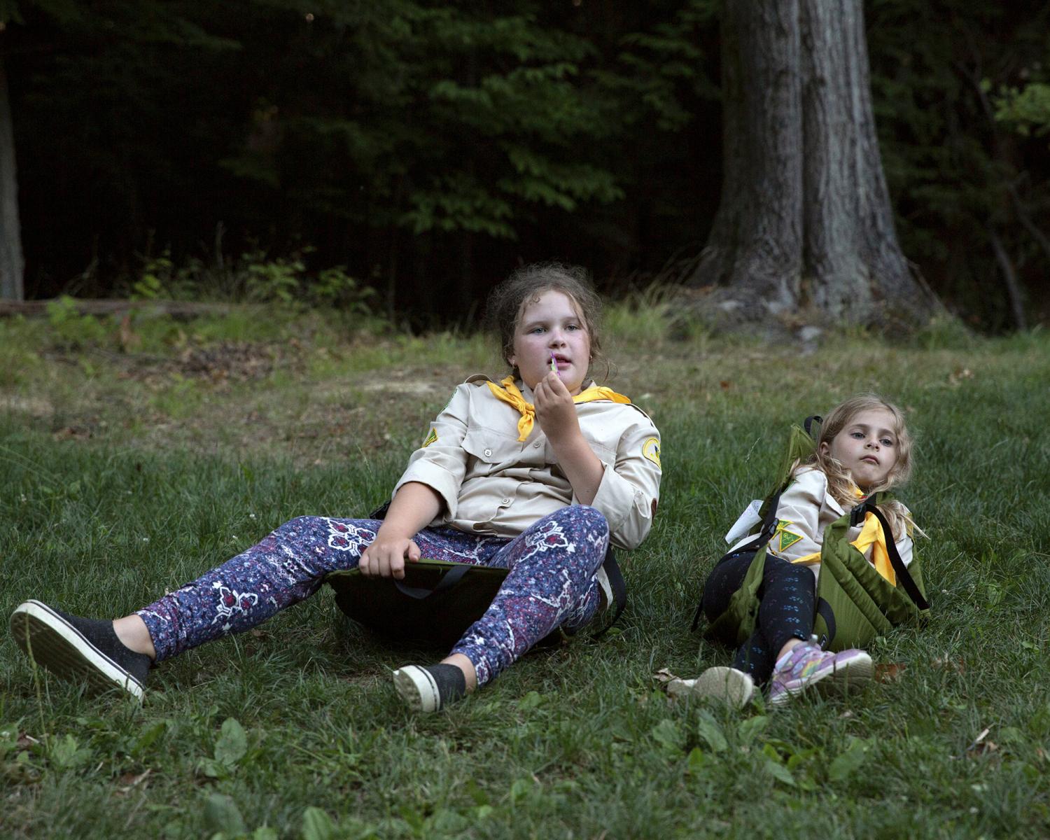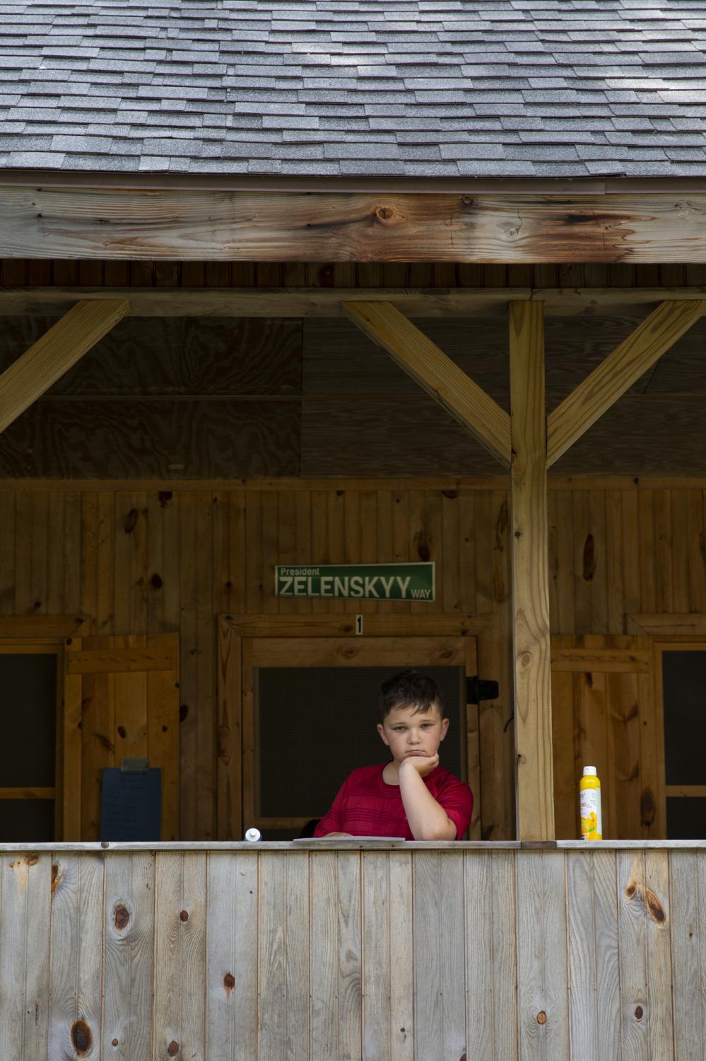 Novyi Sokil is a Ukrainian Plast summer camp outside of Buffalo, NY, where I spent over twelve formative years and it has been in operation since the 1950s. Despite the horrific attempts to cancel Ukrainian culture, the stewards of this camp represent a guiding force in preserving tradition. Through my photographs I study the parcel of land purchased by Ukrainian refugees generations ago so that they would always have a place to convene. It serves almost as a theater set where a changing cast of characters come to immerse themselves in scouting rituals. Attending Plast camp is a rite of passage for young Ukrainians in North America, and like any summer camp, there is fun, friends and bonding. But the tight grasp onto the deliberate, formal, conceptual structure of the scouting rituals, the celebration of the Ukrainian language, and the re-enacting of uniquely Ukrainian customs are part of the fight to hold onto a notion of home, the motherland: Ukraine.