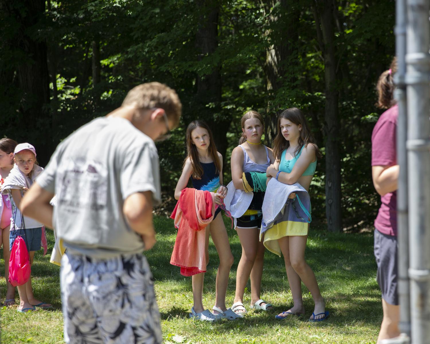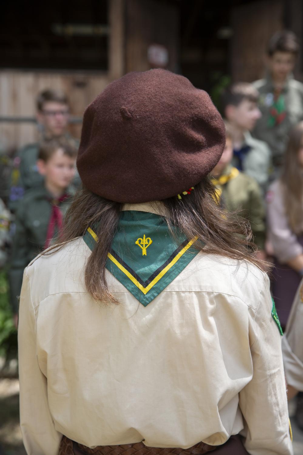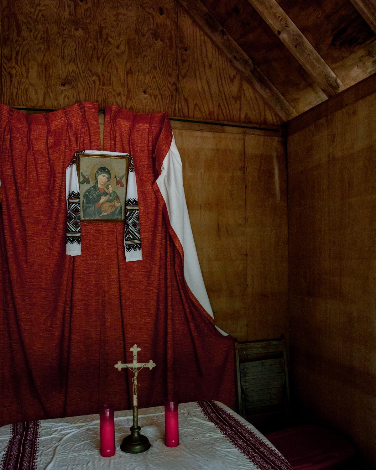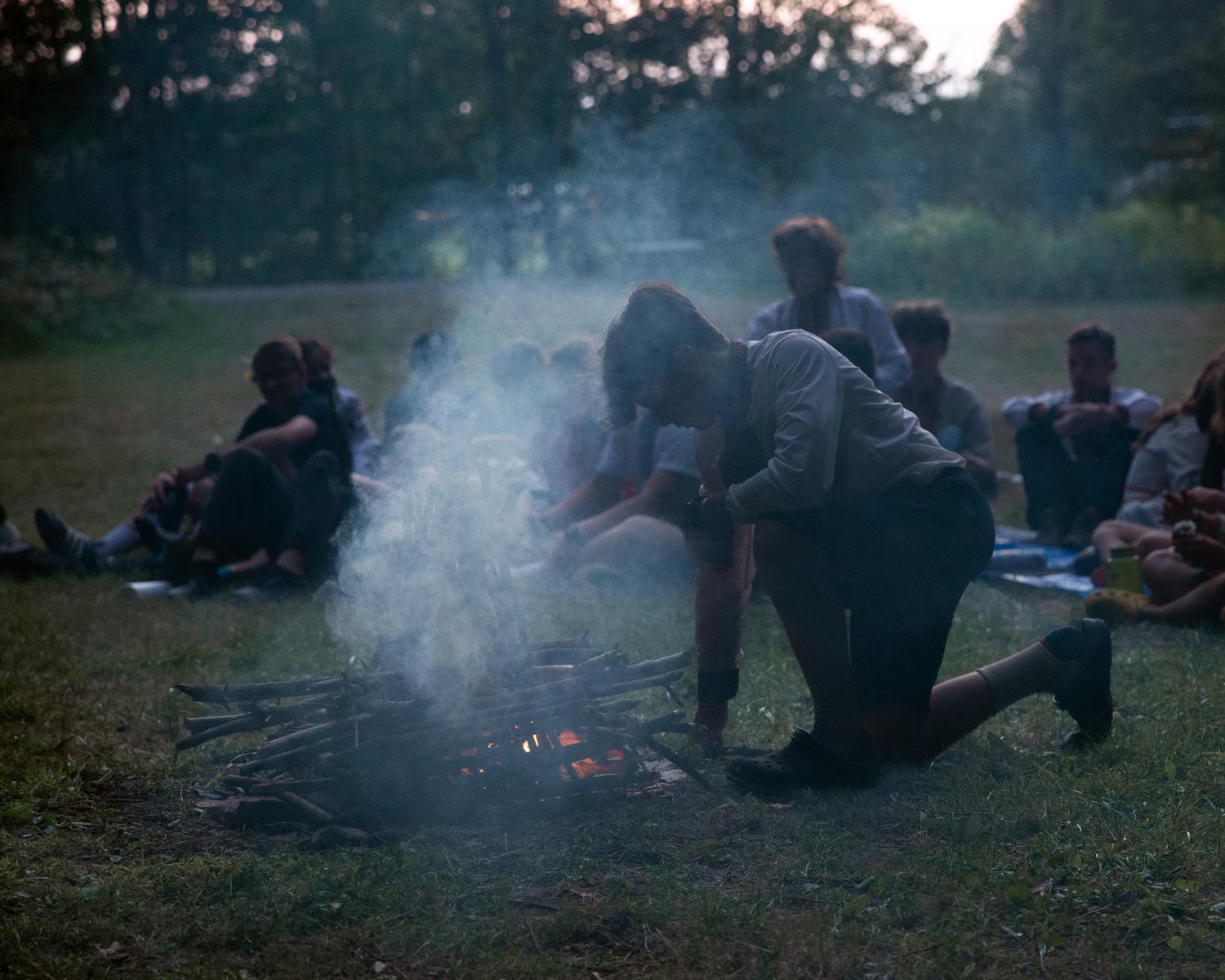 Novyi Sokil is a Ukrainian Plast summer camp outside of Buffalo, NY, where I spent over twelve formative years and it has been in operation since the 1950s. Despite the horrific attempts to cancel Ukrainian culture, the stewards of this camp represent a guiding force in preserving tradition. Through my photographs I study the parcel of land purchased by Ukrainian refugees generations ago so that they would always have a place to convene. It serves almost as a theater set where a changing cast of characters come to immerse themselves in scouting rituals. Attending Plast camp is a rite of passage for young Ukrainians in North America, and like any summer camp, there is fun, friends and bonding. But the tight grasp onto the deliberate, formal, conceptual structure of the scouting rituals, the celebration of the Ukrainian language, and the re-enacting of uniquely Ukrainian customs are part of the fight to hold onto a notion of home, the motherland: Ukraine.