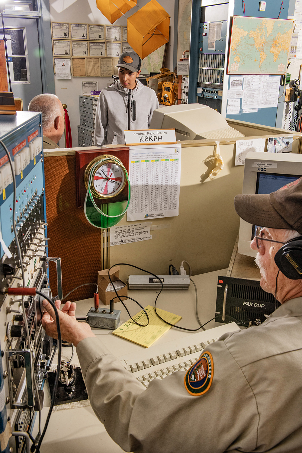 Maritime Radio Historical Society member, Roy Henrichs sends the final commemorative ‘Night of Nights’ morse code signal after midnight at the KPH transmitter station on July 12, 2023 in Point Reyes National Seashore, California. Every year, the self-proclaimed ‘radio squirrels’ gather to send a commemorative transmission to remember the last commercial Morse code signal in the United States. Morse code and maritime radio enthusiasts from around the world tune in to listen as KPH, a historic radio station, returns to the airwaves for ‘Night of Nights.’