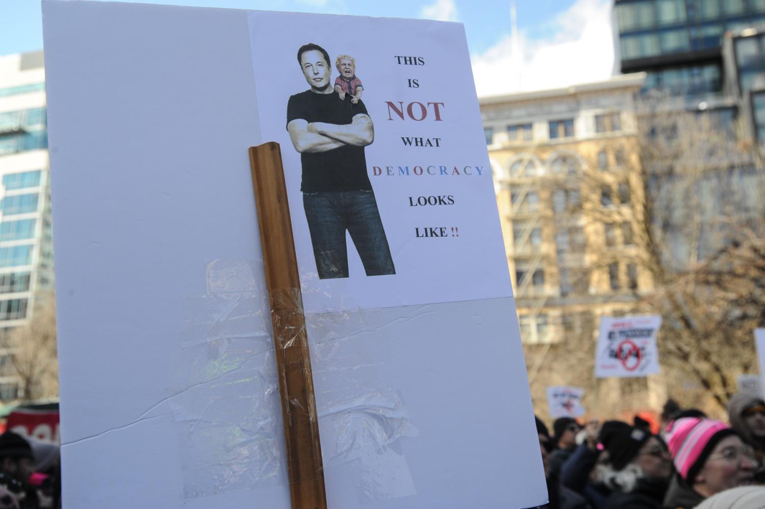 Various speakers, some with megaphones or just yelling, statements, to resist the Donald Trump and Elon Musk.But often one person could illicit the crowd in a chorus of: “This is what Democracy looks like.” “Heh Hey, Ho Ho, Trump and Musk has got to go.” The protesters were quite cheerful, peaceful and orderly as they had an opportunity to exercise their First Amendment right to assembly and exert the freedom of speech, enshrined in the United States Constitution.