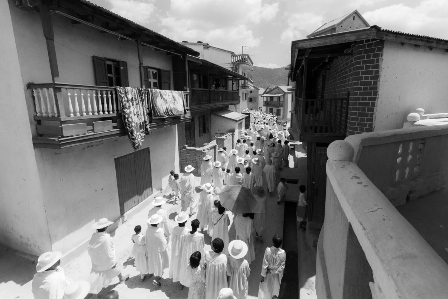 Mystery unveils right in front of my eyes when I enter Soatanana village. A large procession, everyone wearing white and singing religious hymns, moves towards the local church. It feels like I am an unwelcomed outsider, who will ruin the solemn moment by the sound of a camera shutter. Is it even possible to capture this divine light, this overwhelming feeling of being inside this sacral celebration?