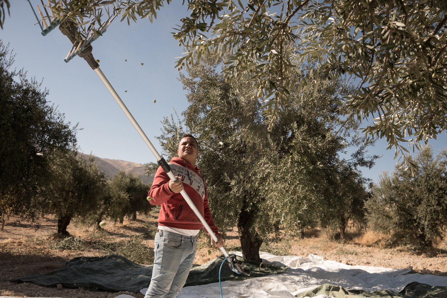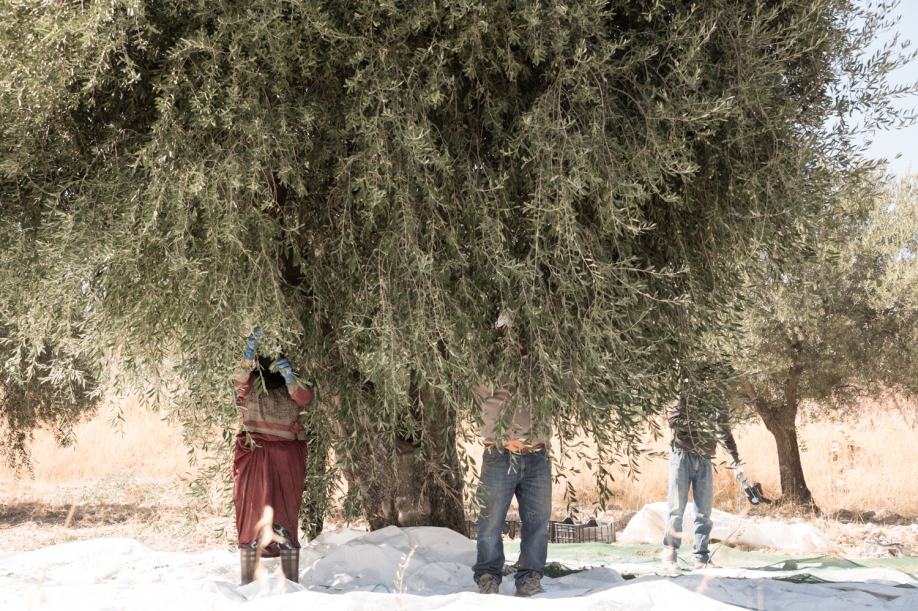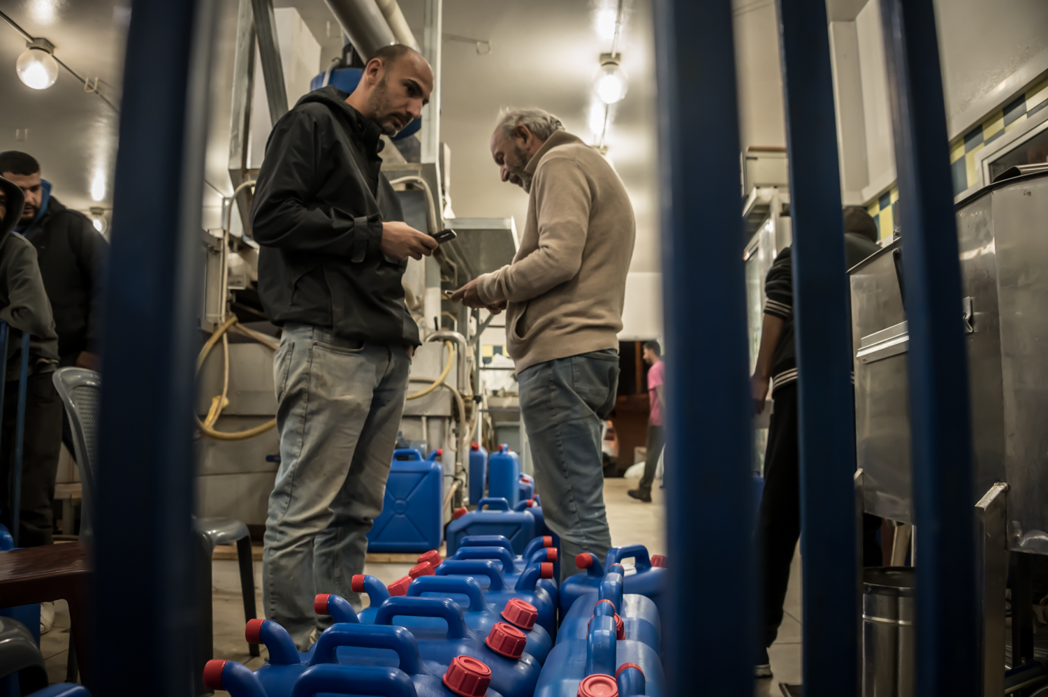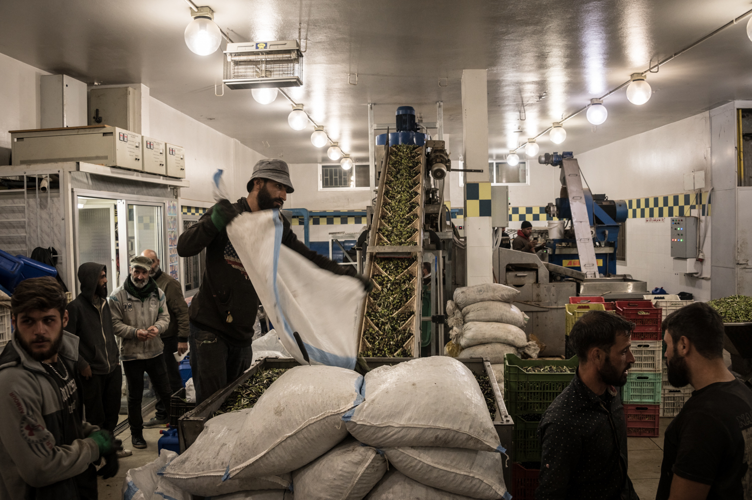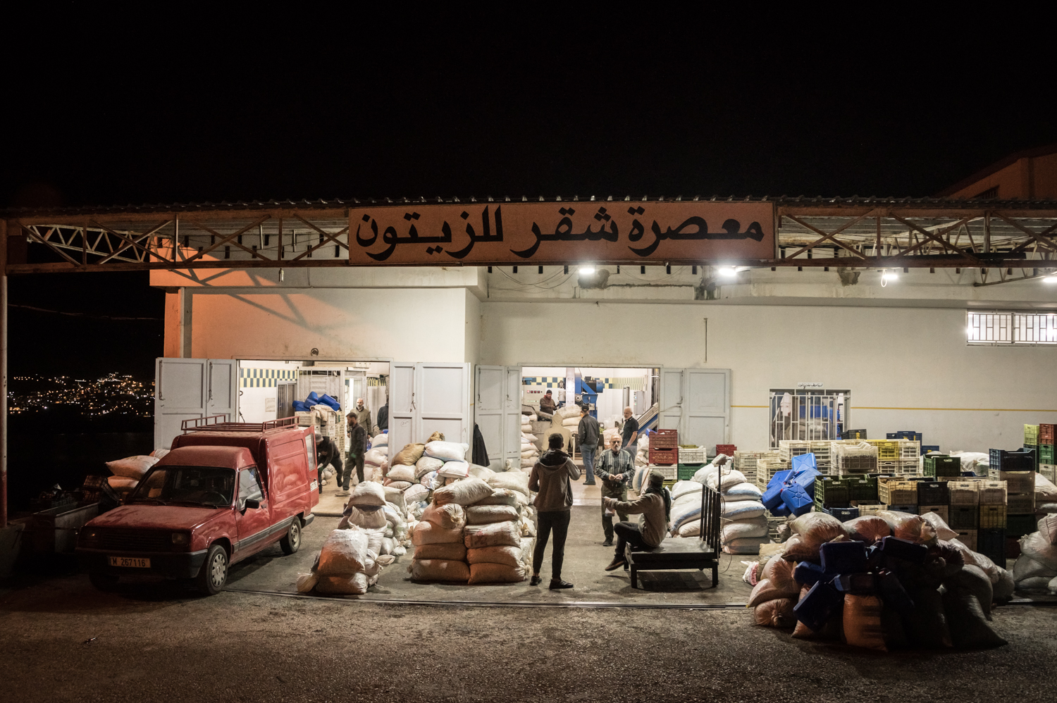 Lebanon's 2024 olive harvest took place in October and November as Israel carried out airstrikes across the country. Pickers gathered in olive groves after the first rains fell, to harvest as fast as possible, especially in areas subject to frequent air raids. The pickers pictured worked a 63 tree grove in East Bekaa, near the Syrian border, in two days. Owner Jad accompanied the harvested olives south to an olive press that reverberated to the sounds of bombing as the olives were ground and pressed to yield over 300 litres of olive oil.