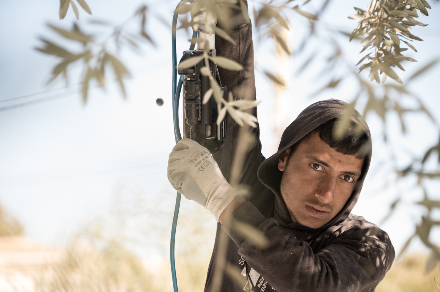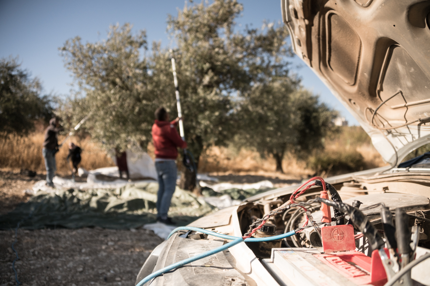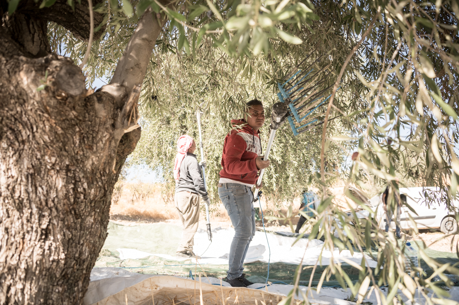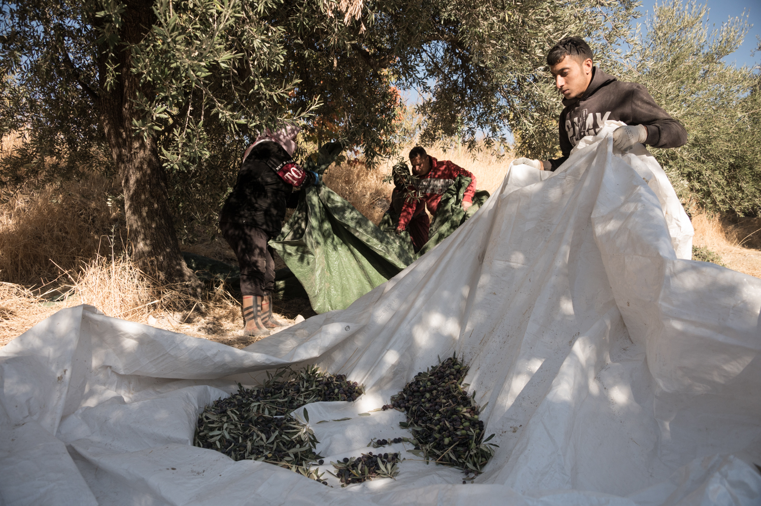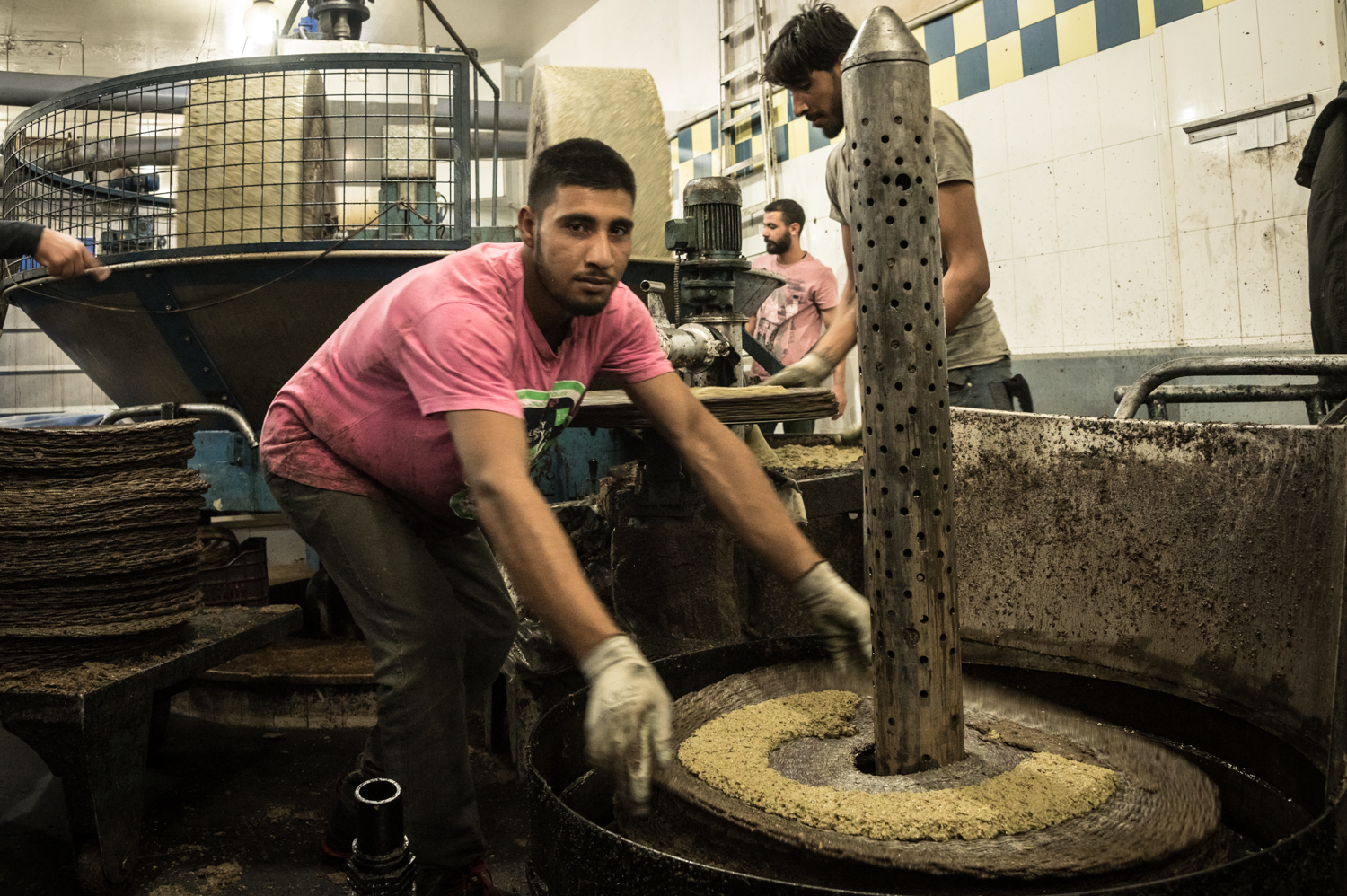 Lebanon's 2024 olive harvest took place in October and November as Israel carried out airstrikes across the country. Pickers gathered in olive groves after the first rains fell, to harvest as fast as possible, especially in areas subject to frequent air raids. The pickers pictured worked a 63 tree grove in East Bekaa, near the Syrian border, in two days. Owner Jad accompanied the harvested olives south to an olive press that reverberated to the sounds of bombing as the olives were ground and pressed to yield over 300 litres of olive oil.