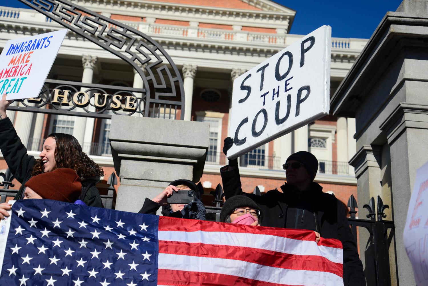 The photos shown here were taken at the Massachusetts State House in Boston. The message first was to stop the coup. There was more outrage expressed against Musk than Trump. More focused messages of trans and LGBTQ+ rights, US AID, reproductive rights, immigration, veterans, and so many others followed.