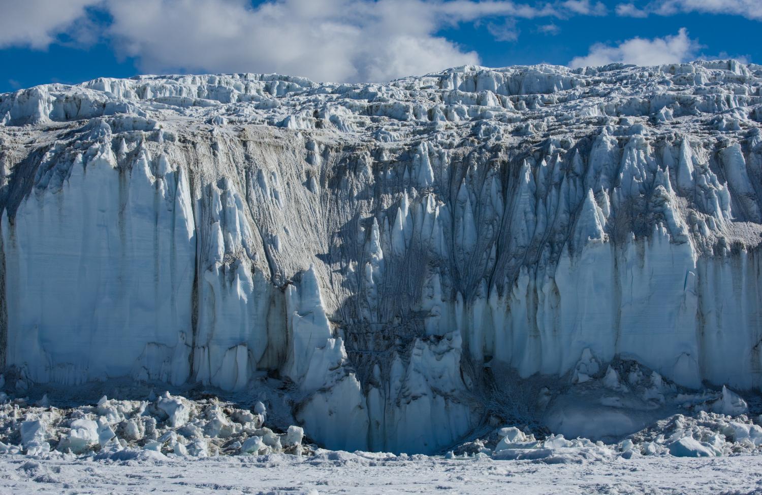"Giant's Face" Pressure Ridge Beneath the Double Curtain Glacier (2015) A source photo for the 3D file shown in the next two slides. The unusually tall and Baroque-looking sea ice pressure ridges below the Double Curtain Glacier along McMurdo Sound in Antarctica are seldom visited, as they are only accessible by an hour-long trip along the coast via snowmobile from the small New Harbor field camp, where I was staying for a few days with a team of ocean biologists. Multi-year sea ice had been pushed by tides about 20 feet high, and partially melted into strange shapes of unending variety.