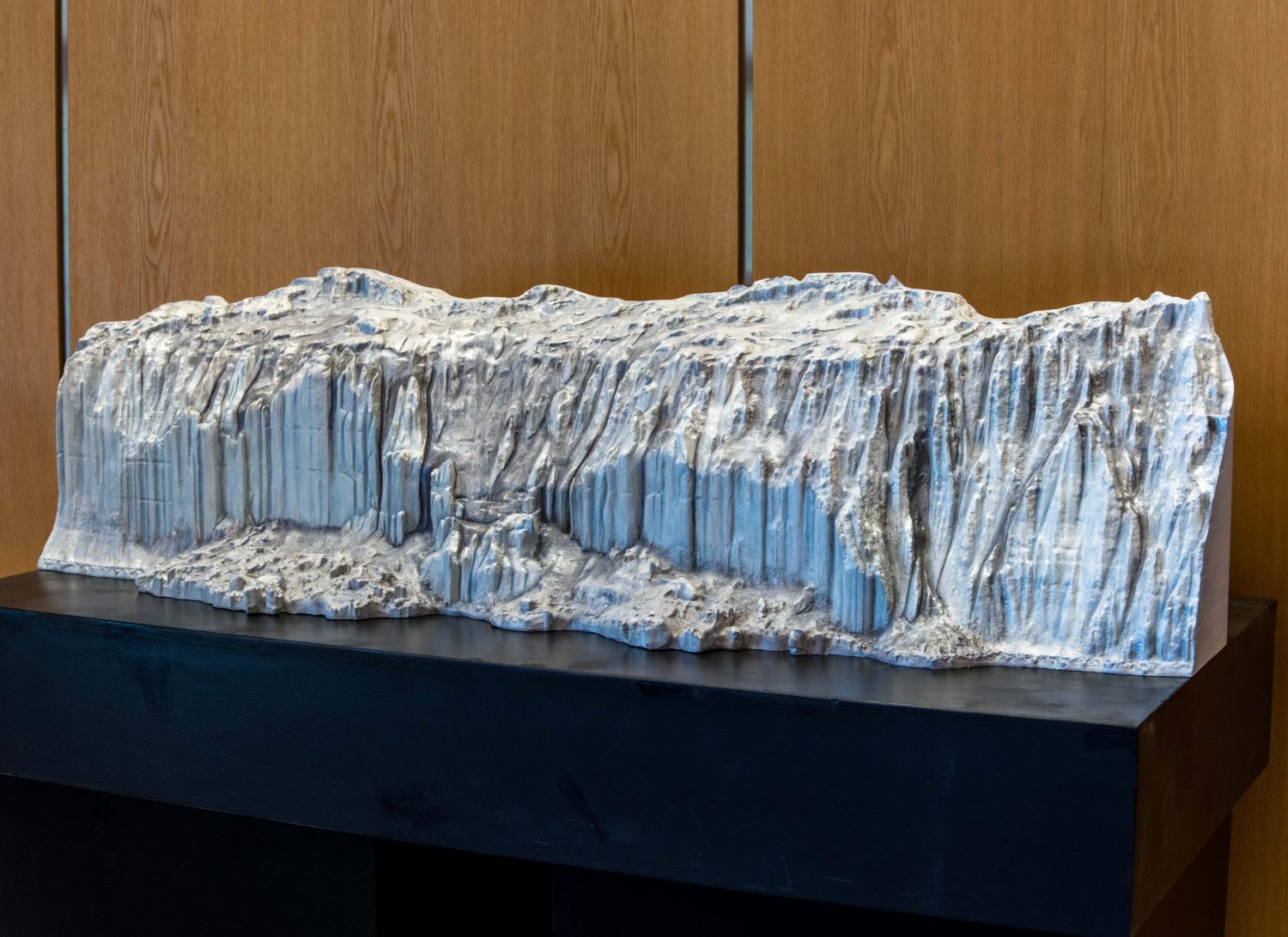 Some of the photographs are produced as archival prints. I also makesculptures of landscape forms generated from a series of still photographs taken on site and reconstructed as 3D scans by photogrammetry software. After further editing in 3D modeling software, the resulting digital files become the basis for hand-painted sculptures made with digital fabrication technologies — CNC routers or 3D printers. They provide the viewer a visceral experience of form and texture that differs from the flat image and fixed point of view delivered by a photographic print.