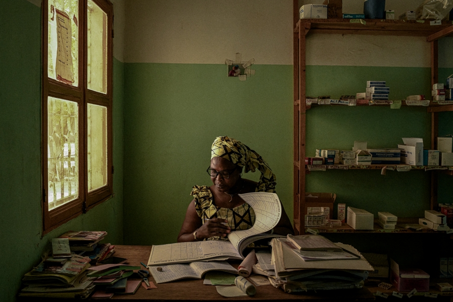 Jeanne Marie Dieng checks the drug registry in her office at the Ndiagamba Health Centre. Every dose is meticulously recorded in the TB register, a vital tool for monitoring treatment adherence. Although tuberculosis is curable, the therapy is long and demanding. Without continuous medical follow-up and strong community support, interrupted treatment can lead to relapse, ongoing transmission, and death. Ndiagamba, May 14, 2025