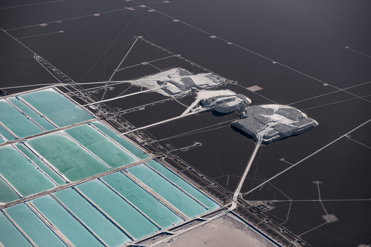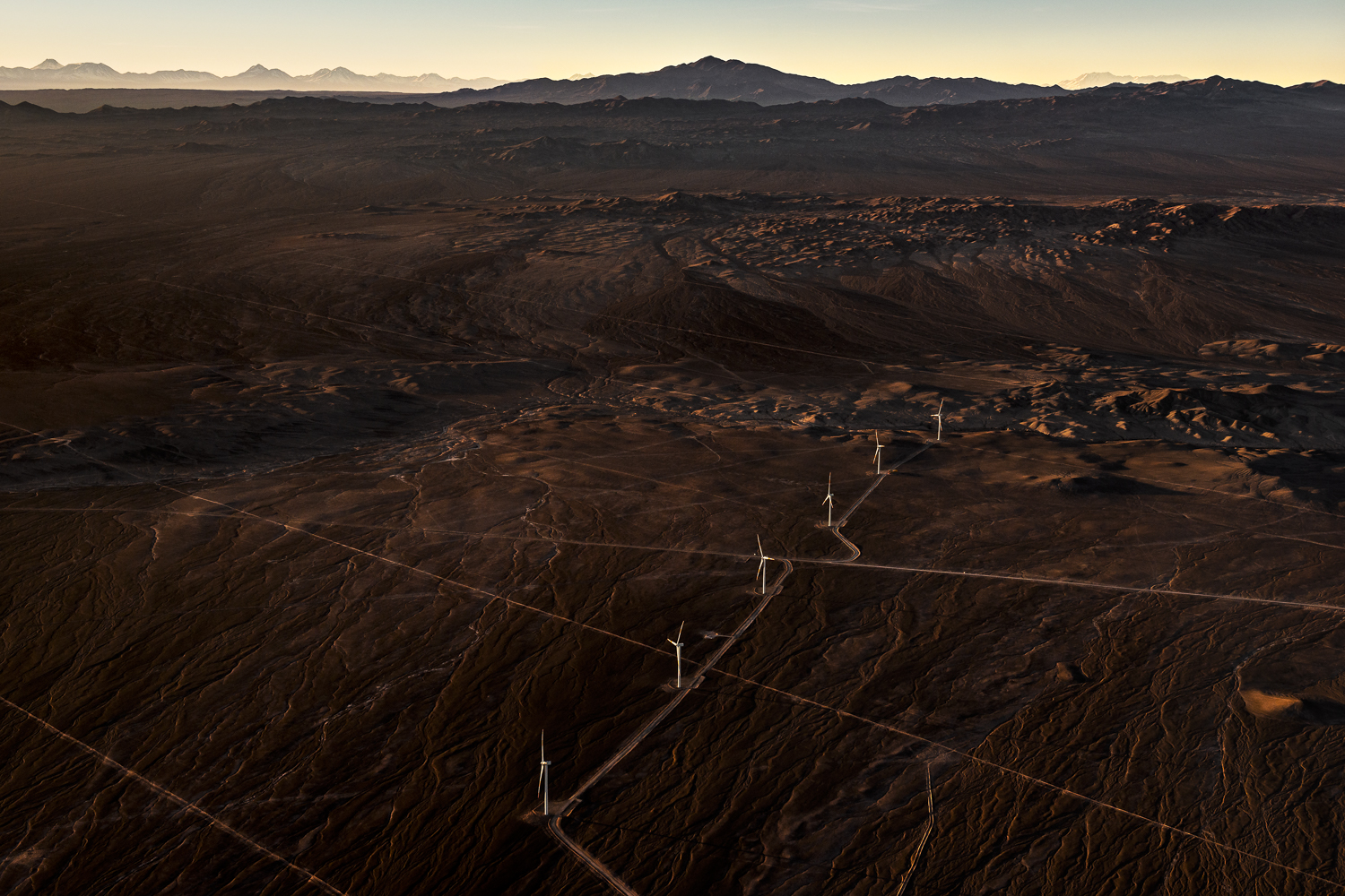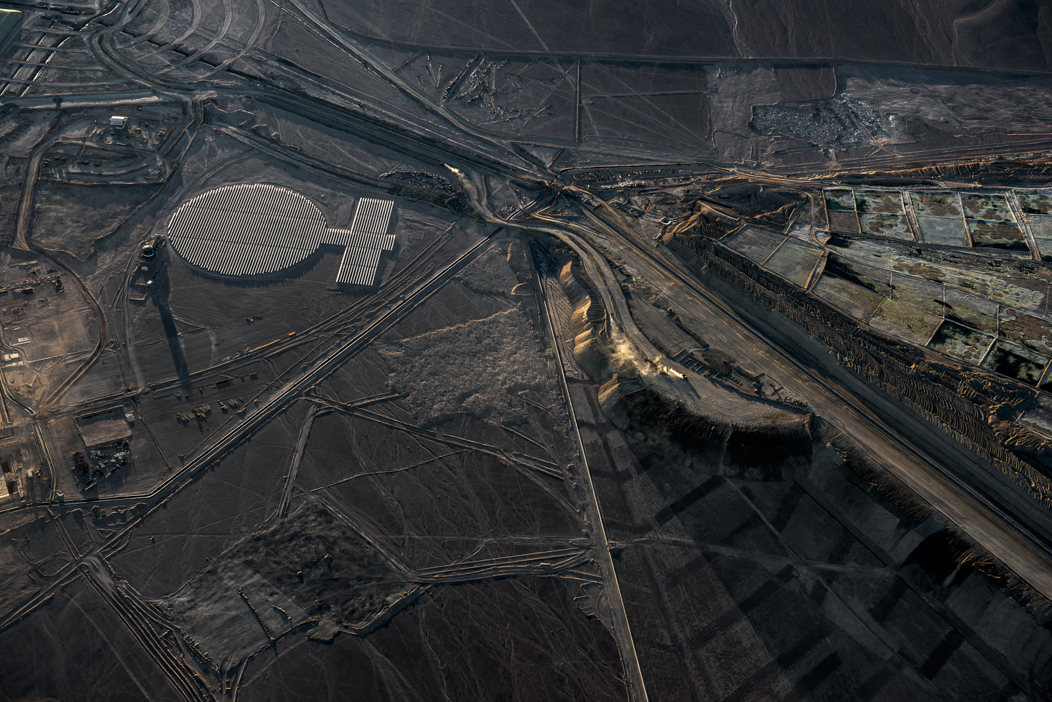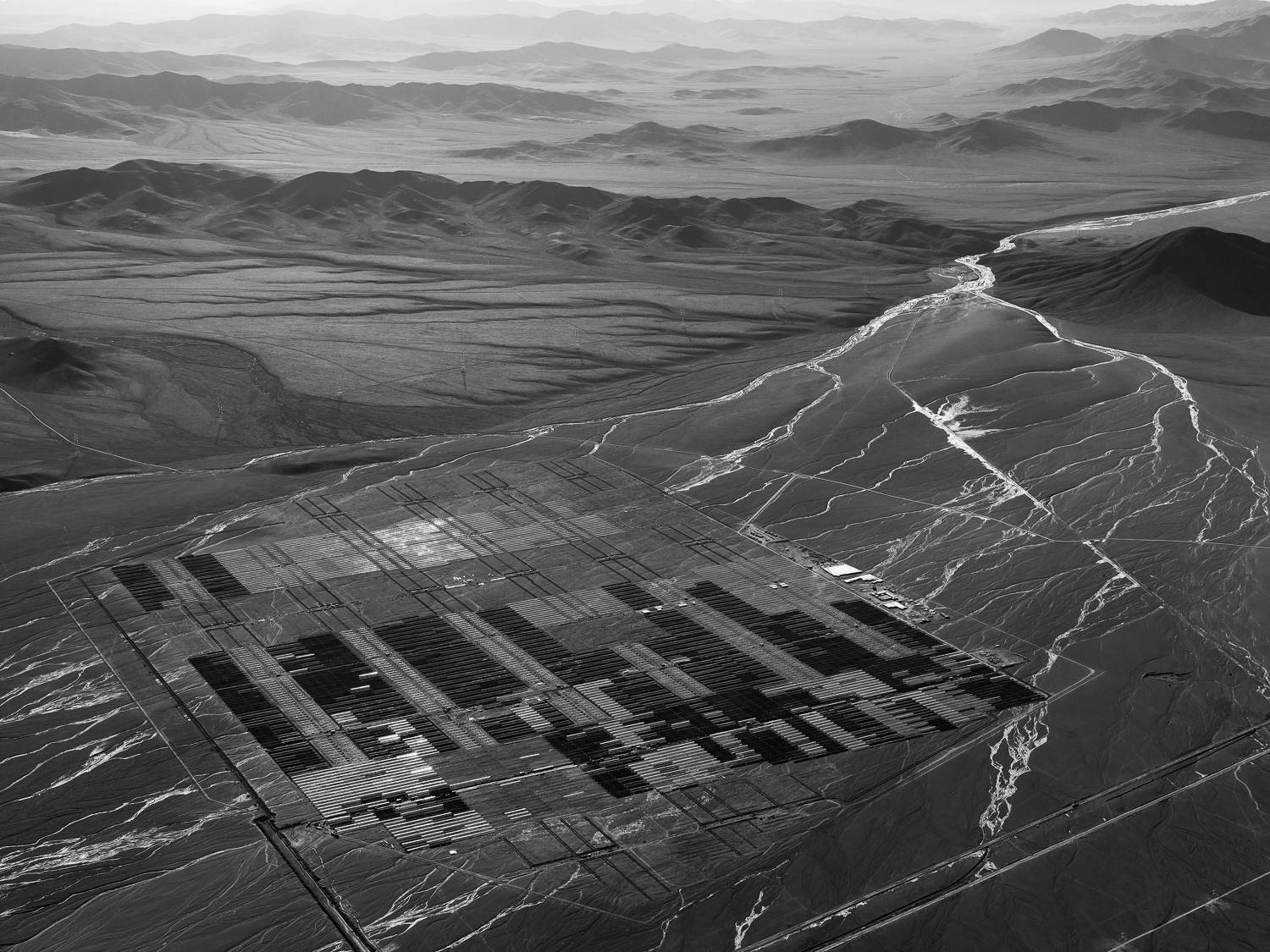 Chile is the world's leading copper exporter and the second-largest lithium producer. The diverse geography and geology of the Atacama Desert give it a unique set of attributes, offering excellent solar and wind potential. Since 2017, when I first photographed over the Atacama, the country has tripled its renewable energy capacity. New solar, wind, and storage projects supply electricity to the grid, transmit power to population centers in the South, provide electricity and solar thermal energy to mines, and reduce mining's dependence on fossil fuels. Chile's renewable energy development is now an example for other countries and mining operations worldwide, offering hope and inspiration. Thus, a growing dynamic between the extractive mining industry and the rapidly developing renewable energy sector makes the Atacama a compelling subject.