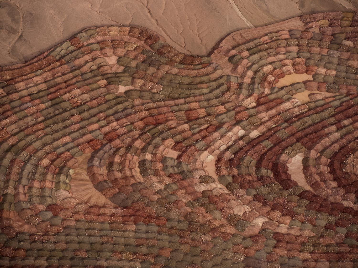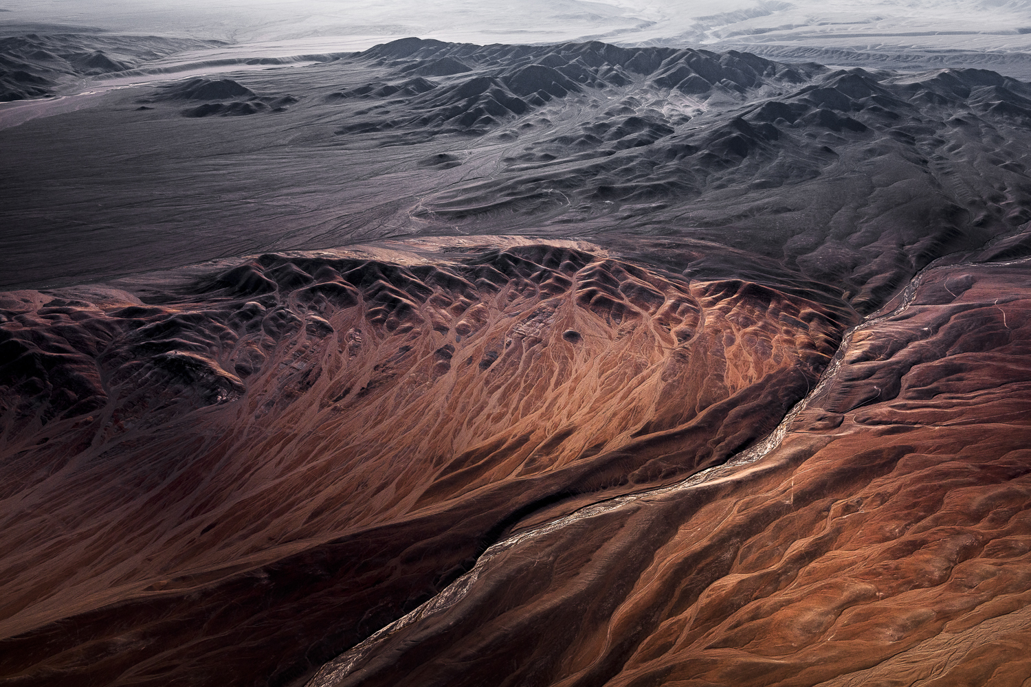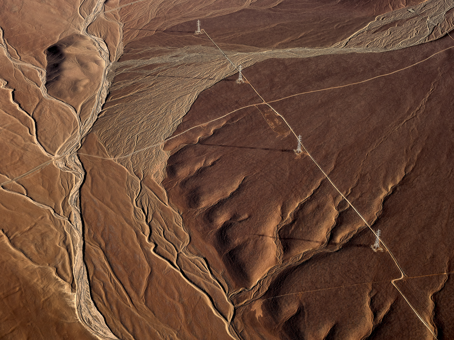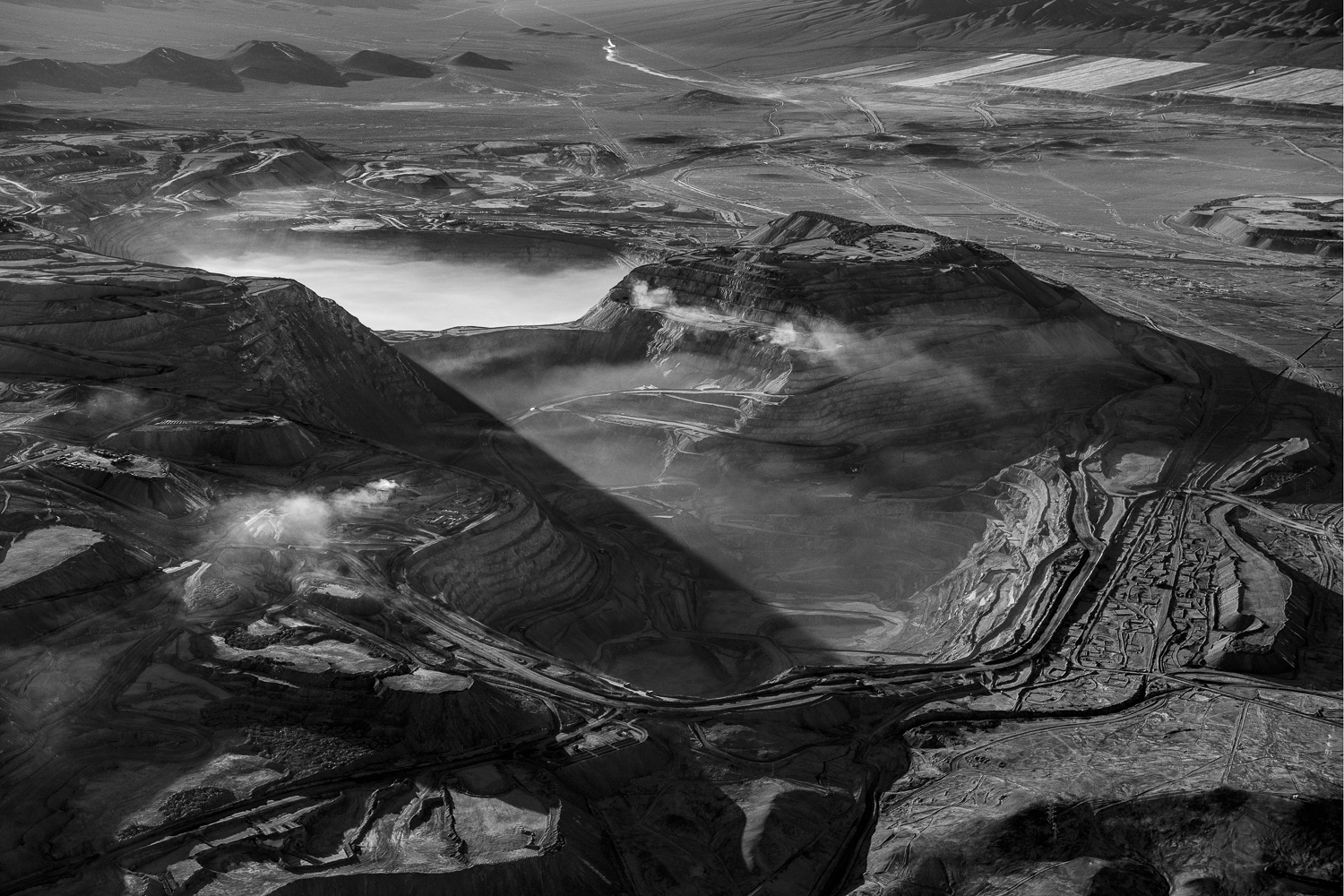 Chile is the world's leading copper exporter and the second-largest lithium producer. The diverse geography and geology of the Atacama Desert give it a unique set of attributes, offering excellent solar and wind potential. Since 2017, when I first photographed over the Atacama, the country has tripled its renewable energy capacity. New solar, wind, and storage projects supply electricity to the grid, transmit power to population centers in the South, provide electricity and solar thermal energy to mines, and reduce mining's dependence on fossil fuels. Chile's renewable energy development is now an example for other countries and mining operations worldwide, offering hope and inspiration. Thus, a growing dynamic between the extractive mining industry and the rapidly developing renewable energy sector makes the Atacama a compelling subject.