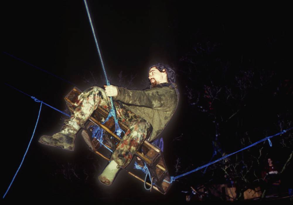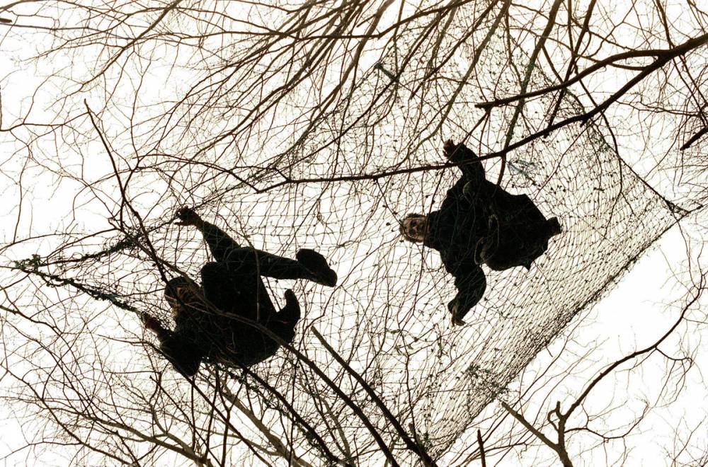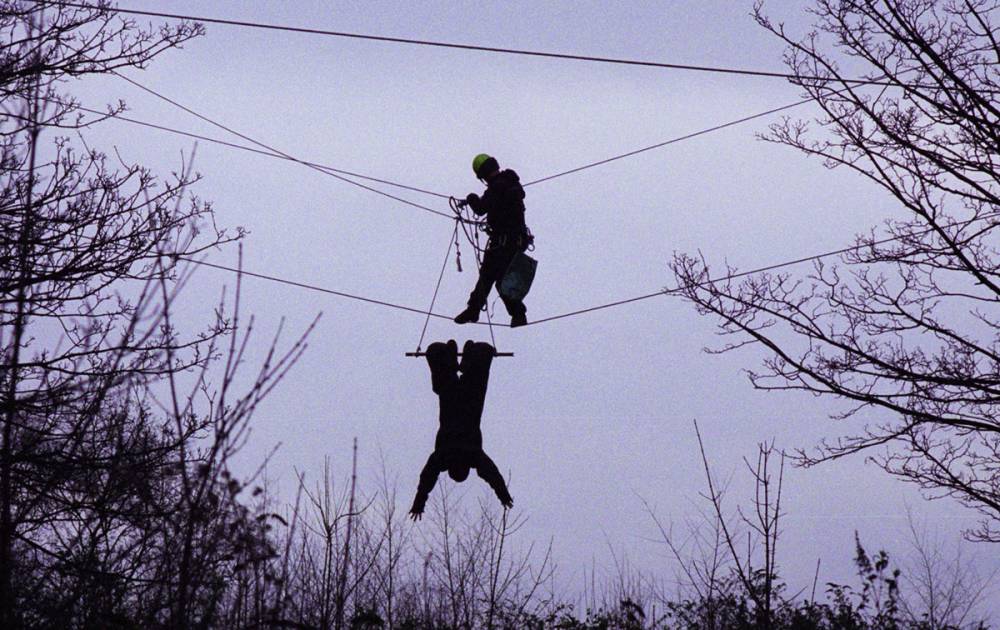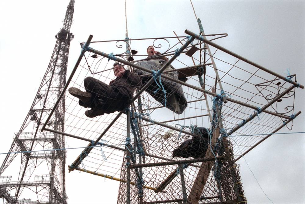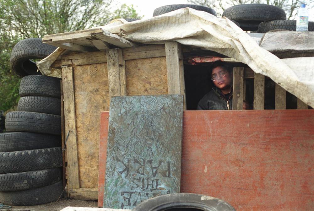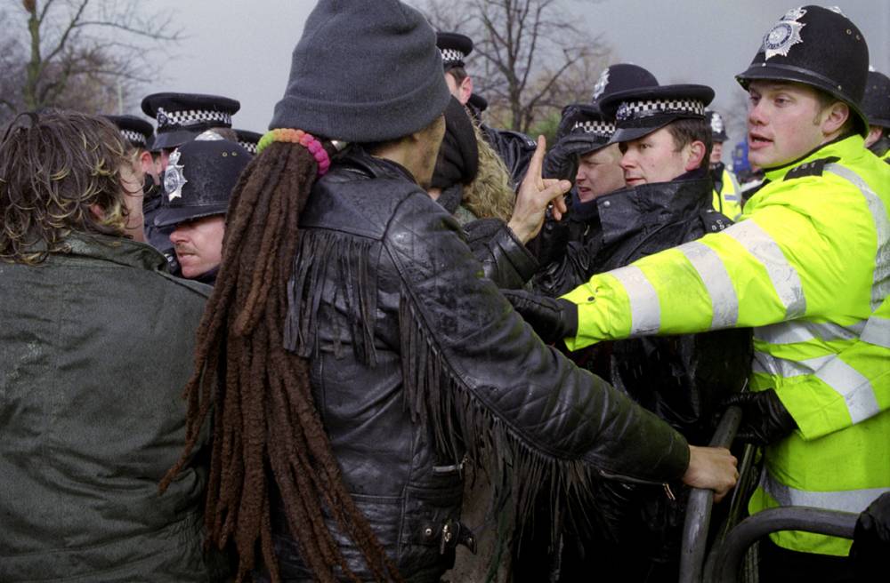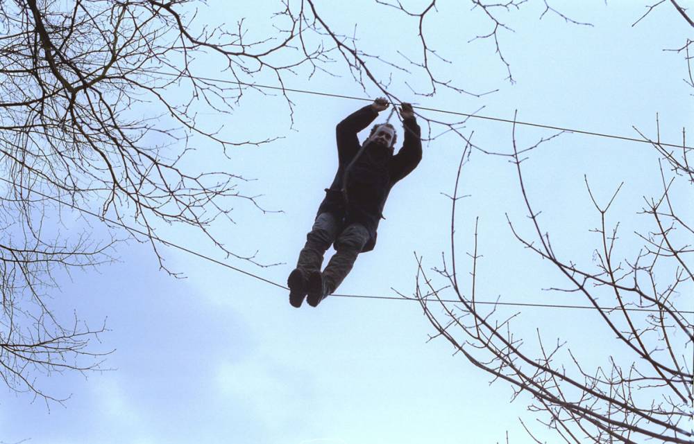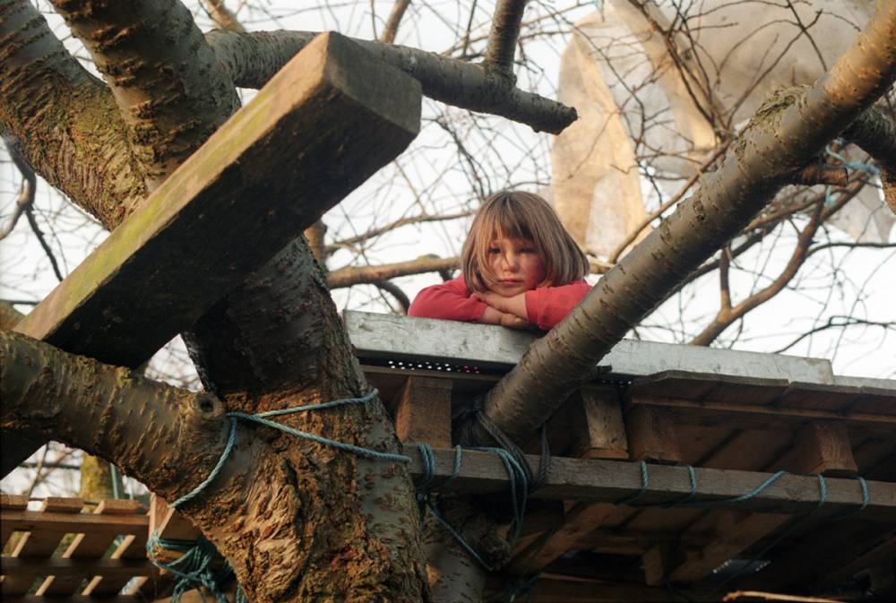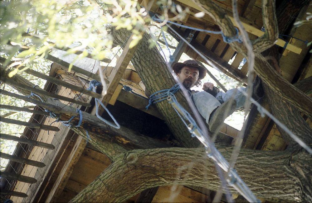 For a year and a half a group of Eco Warriors squatted in public parkland in Crystal Palace the highest point in South London. Protesting the proposed building of a £58m leisure complex which would both take away parkland and devestate the wildlife, they constructed and lived in makeshift tree houses and creative structures made with scaffolding poles. Rope walkways connected the tree houses and also provided escape routes when the ballifs moved in to evict the camp.