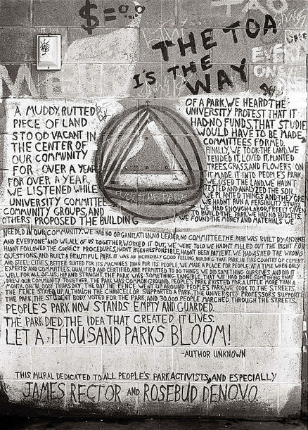 In June 1969 students and local residents of Berkeley occupied a vacant piece of land belonging to the University of California, the birthplace of the Free Speech Movement, and home to a radical anti-authoritarian political tradition. Hundreds of students and local residents occupied and worked the land. The new park was alive with rebellion, energy and hope.
