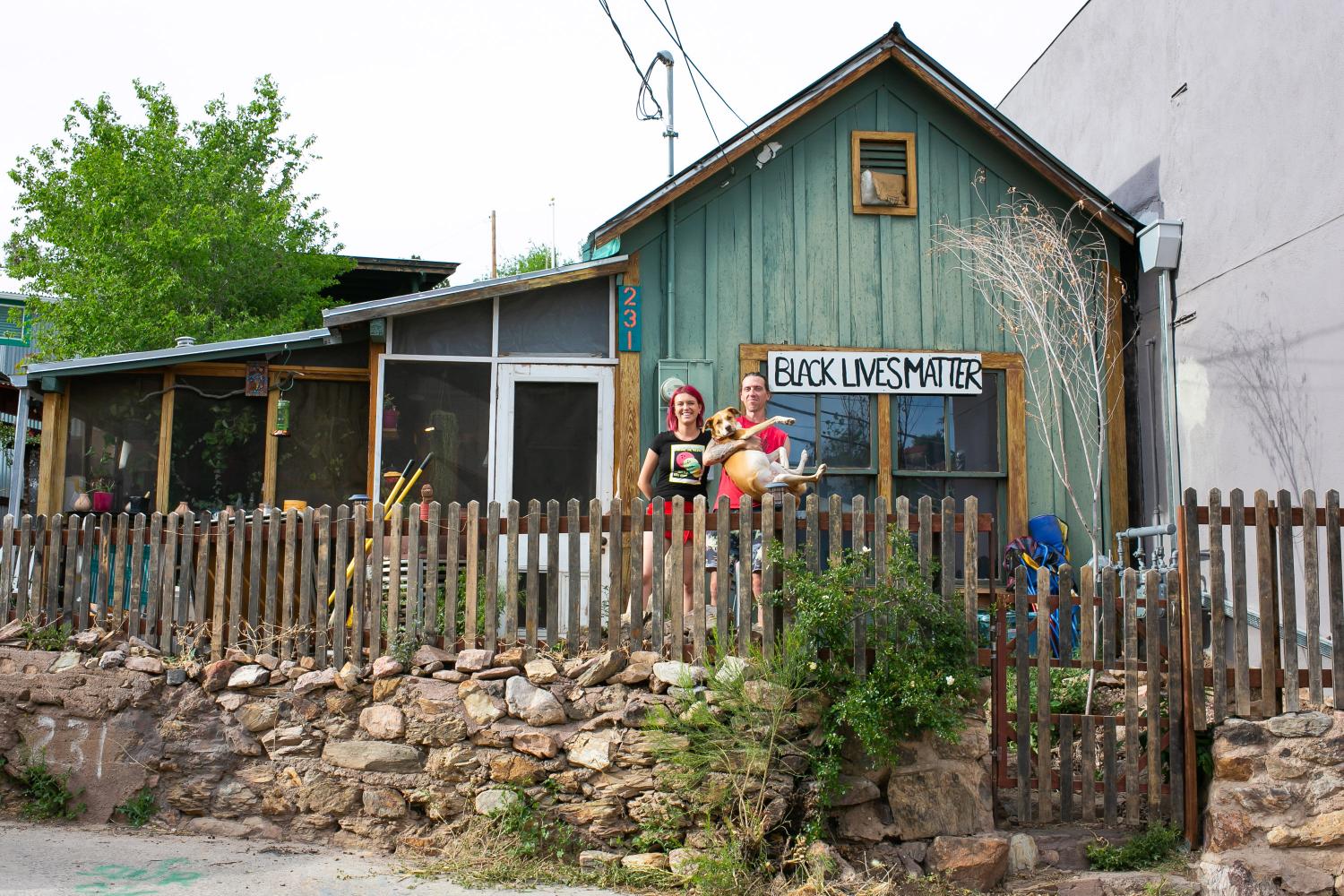 Savannah and Brian “When George Floyd was murdered and the nationwide BLM protests were ratcheting up, we were just absolutely outraged and felt that we should do something, even if just a small gesture. So we nailed a shoddy sign on our shoddy house. In the year since, several passersby have complimented the sign, a few passing tourists have grimaced, and we’ve enjoyed both reactions. Any meaningful social change involves making some people uncomfortable, and the fact that most of our neighbors seem fine with it means that we’re living in the right place.”