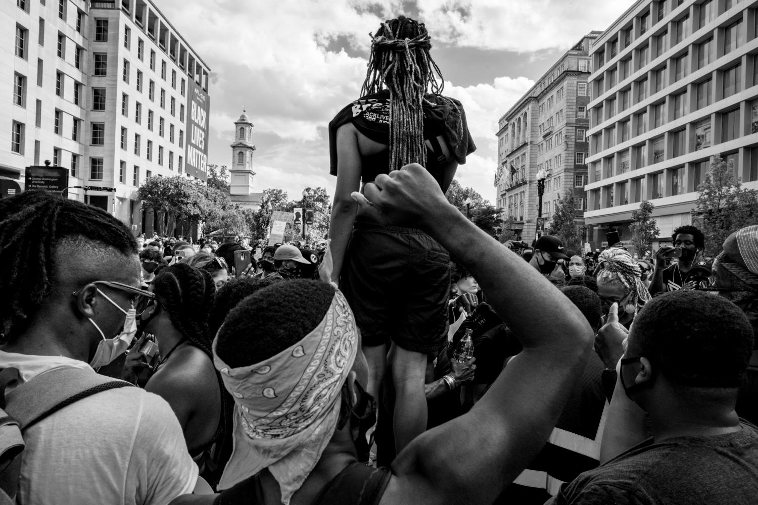 I confess to being relatively new to the craft of social documentary photography, having spent the bulk of my working career as an advertising Creative Director and writer. But even in my prior role, the aim for me was always the same – uncover the truth that others aren’t seeing, tell the story that isn’t being told, and make it as deeply human as possible. As you can imagine, there was no shortage of photographers covering the Black Lives Matter marches and rallies in that summer of 2020. It was a huge media event. So, I had to ask, what story can I possibly tell that isn’t already begin told by a hundred other photographers? As I considered that challenge, I marched. And I marched. And I marched. And as I did, I let the answer, and ultimately the story, come to me. While most photographers jogged along sidewalks, hung from lamp posts, or ran out in front of the protesters to capture the big moment, I found myself shoulder to shoulder with the experience itself – an experience that was rich and complex and deeply human. As a photographer, it’s a place I like to be.