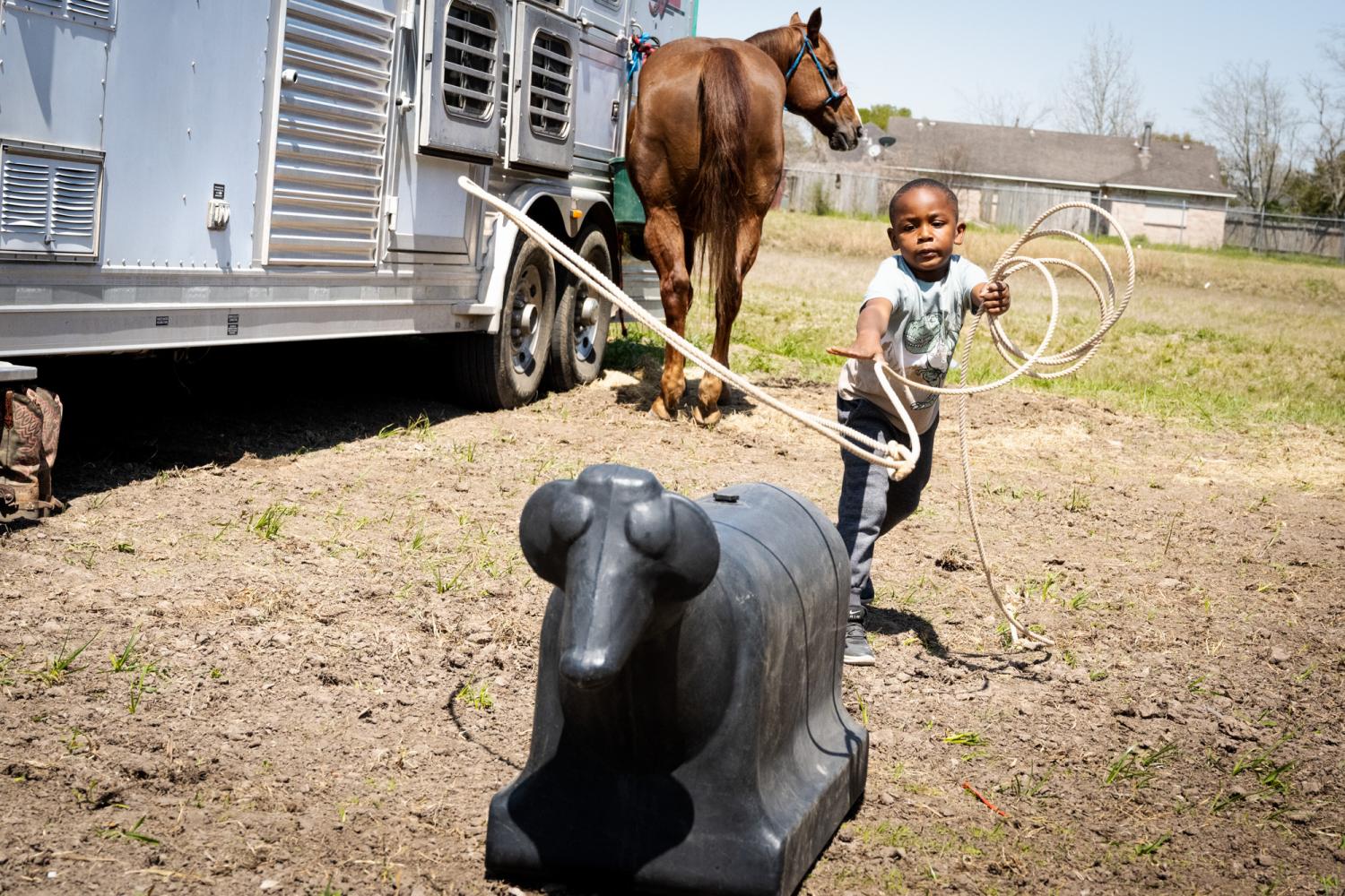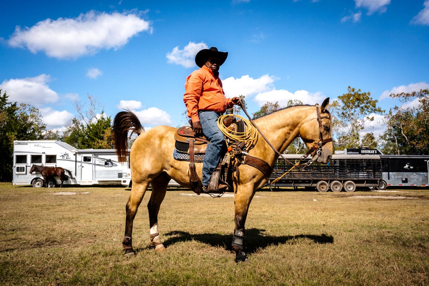 Life, According to Rodeo began as a photographic documentation of modern Black rodeo cowboys, but soon grew into something deeper and more meaningful – a reflection on what’s important and lasting in life: family, community, continuity, and the central role of a good horse. The photographs in this exhibit are one half of a recently published book project. In published form, they appear side by side with the reflections, recollections and life lessons shared with me by the cowboys themselves. The rodeo cowboys in these photographs live in and around the small Texas town of Cheek, population roughly 550. They work 9-5 jobs, just like most of us, but they live for the weekends, when rodeo arenas spring to life, and friends, families and whole communities gather once again to test their skills at bull riding, steer wrestling, calf roping and barrel racing. Rodeo is the glue that binds them together, and the rudder that keeps their lives steady in turbulent times. Theirs is a life, according to rodeo.