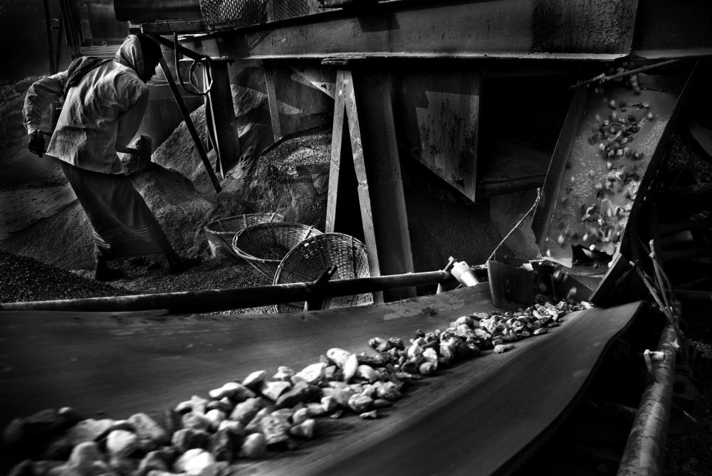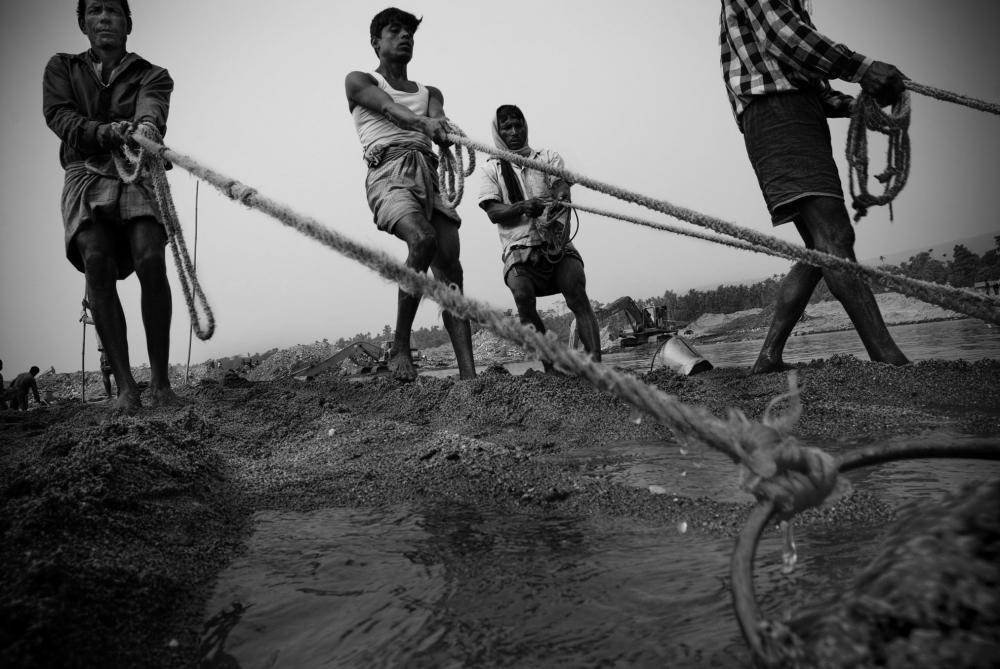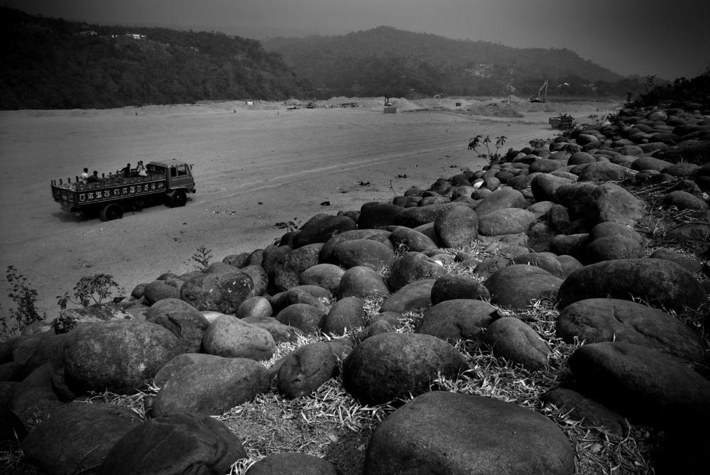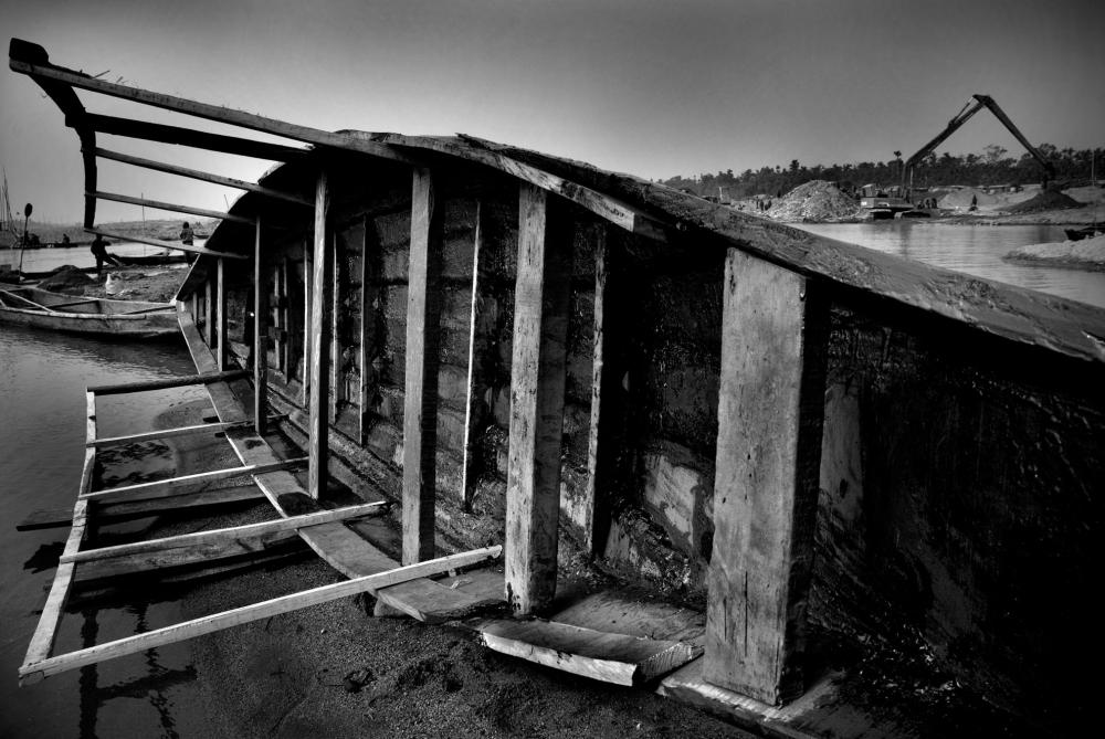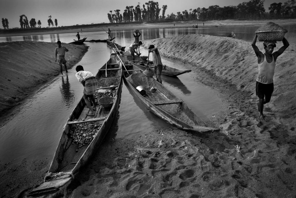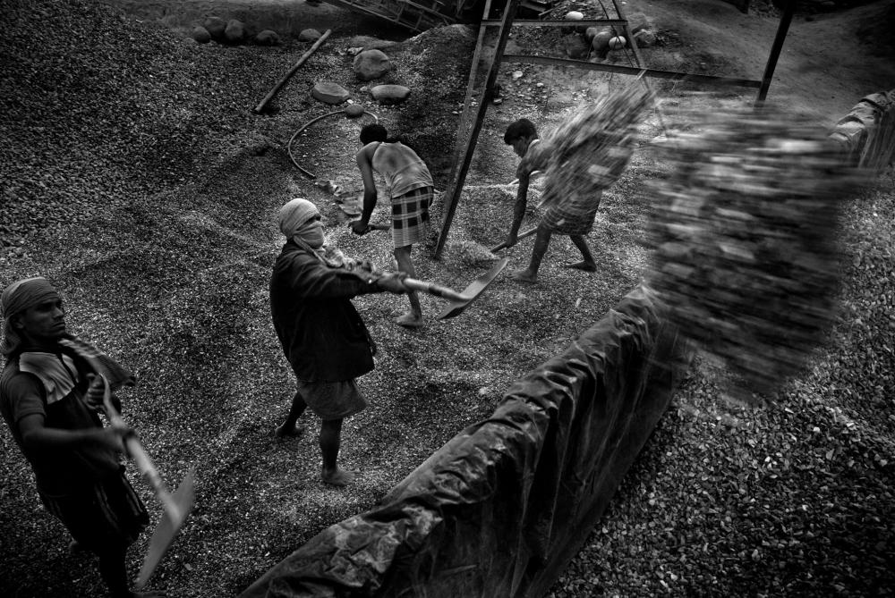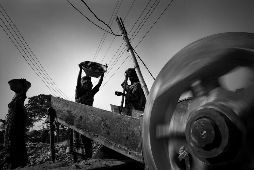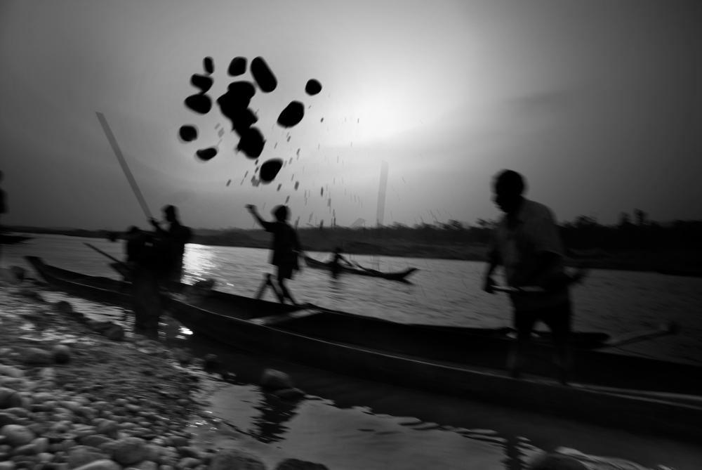 The story which I emphasis on is about a hard working community of Jaflong, which is located on the northeastern part of Bangladesh. At dawn every day, more than a hundred little boats with laborers enter the Piyain River, buckets and spades in hand. This is one trade which has a geological limit. The stones that tumble down the riverbed from India are decreasing in volume and the laborers are already taking the risk of invading the no-man’s land along the Indo-Bangla border which is a contradictory political issue between Bangladesh and India. Many laborers were killed by BSF in that border area. More than 5,000 men, women and child stone-laborers are engaged here. Uncontrolled and unstoppable, stone extracting and crushing at Jaflong has been posing a serious threat to public health, and to the environment and agriculture in the area. During my working from 2006 as many as 250 machines are engaged in crushing stone at Jaflong.