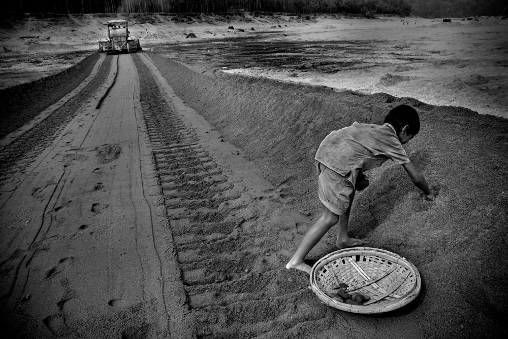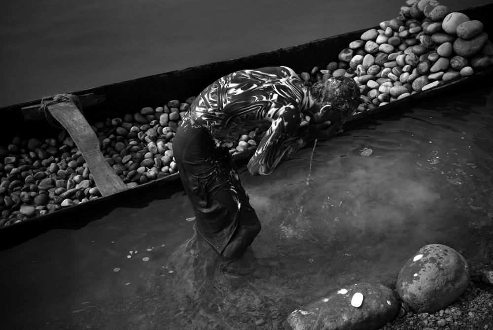 The story which I emphasis on is about a hard work community of Jaflong, which is located on the north eastern part of Bangladesh. The Piyain River is the main feature and natural beauty of Jaflong which flows from India through Bangladesh. During the monsoon, the river currents wash down precious rocks and pebbles from India into Jaflong area. At dawn every day, more than a hundred little boats with laborers enter the Piyain River, buckets and spades in hand. This is one trade which has a geological limit. The stones that tumble down the riverbed from India are decreasing in volume and the laborers are already taking the risk of invading the no-man’s land along the Indo-Bangla border which is a contradictory political issue between Bangladesh and India. Many laborers were killed by BSF in that Borders Area. More than 5,000 men, women and child stone-laborers are engaged here. Uncontrolled and unstoppable stone extracting and crushing at Jaflong has been posing a serious threat to public health, and to the environment and agriculture in the area. There is no legal protection and no human rights in this Stone Industry. Many children there have been suffering from hearing problems due to the high-pitched sounds of the stone-crushing machines.
