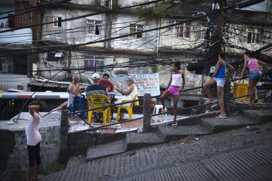Men play cards in Rocinha, the biggest favela in Brazil, with over 100,000 residents, in Rio de Janeiro, Br., on Thursday, Jan. 24, 2013. About 3,000 police officers and soldiers moved into one of the largest slums in Latin America early November 2011 in an effort by the Brazilian government to assert control over lawless areas of the city ahead of the 2014 World Cup and 2016 Summer Olympics.