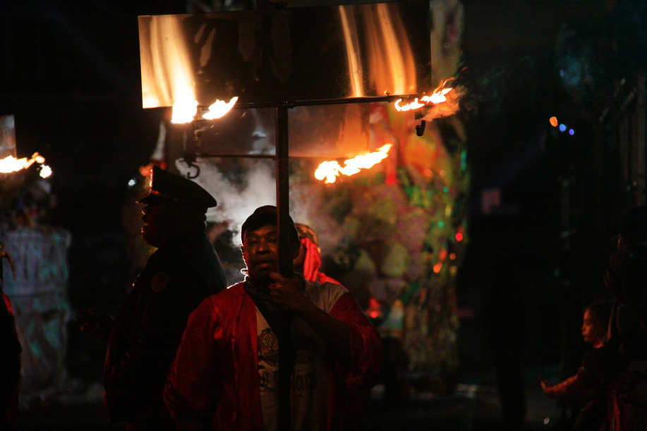 Today’s flambeaux members carry the heavy torches but now dance for tips. Many would say that picking up coins and dollars off the street reinforces stereotypes of the black man performing for white people.