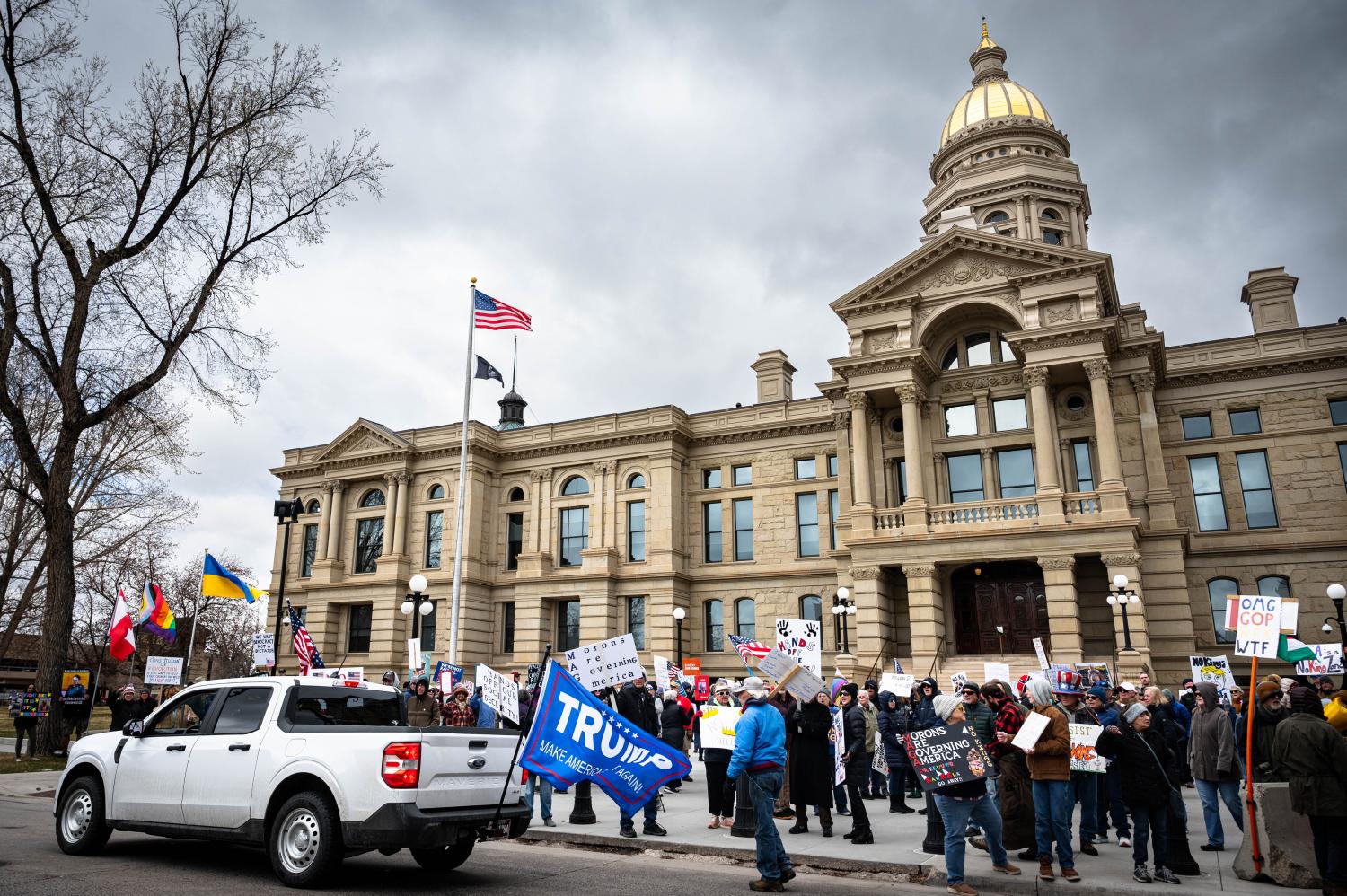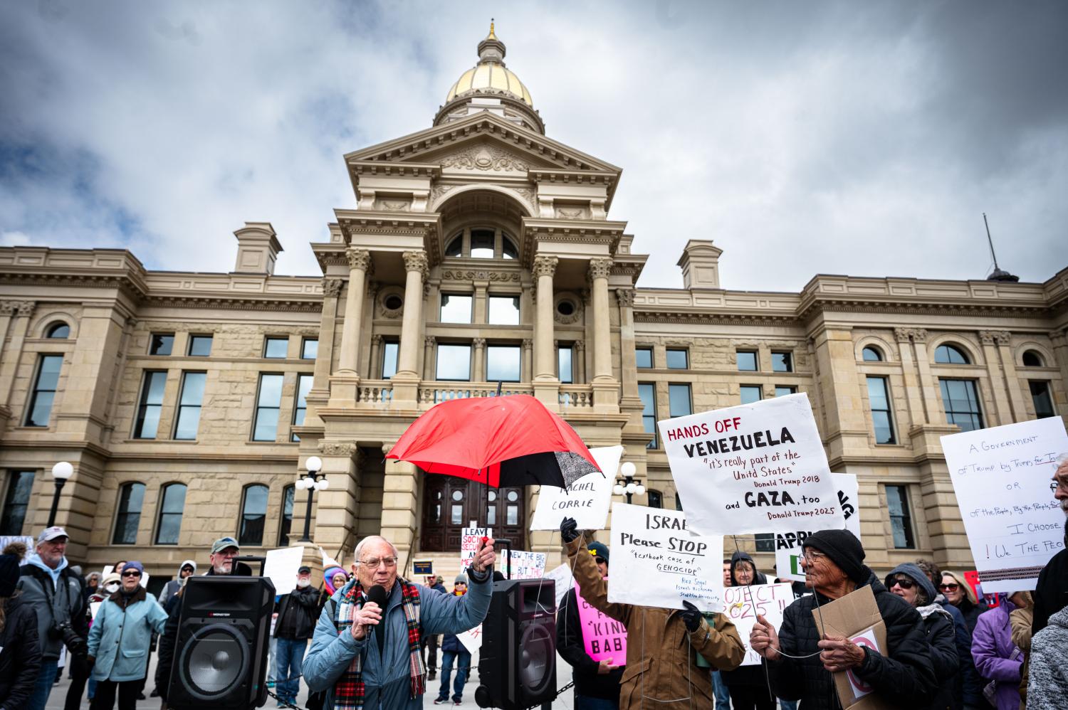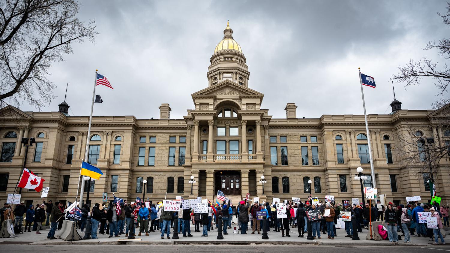 Since President Donald Trump has taken office there have been an uptick in protests all over the United States. Even in traditionally conservative states such as Wyoming people have been organizing by the hundreds at the State Capitol in Cheyenne. Saturday, April 19th 2025 was no exception. About 300 people gathered to protest for No Kings Day. They were met with little resistance as only 2 counter protesters showed up.