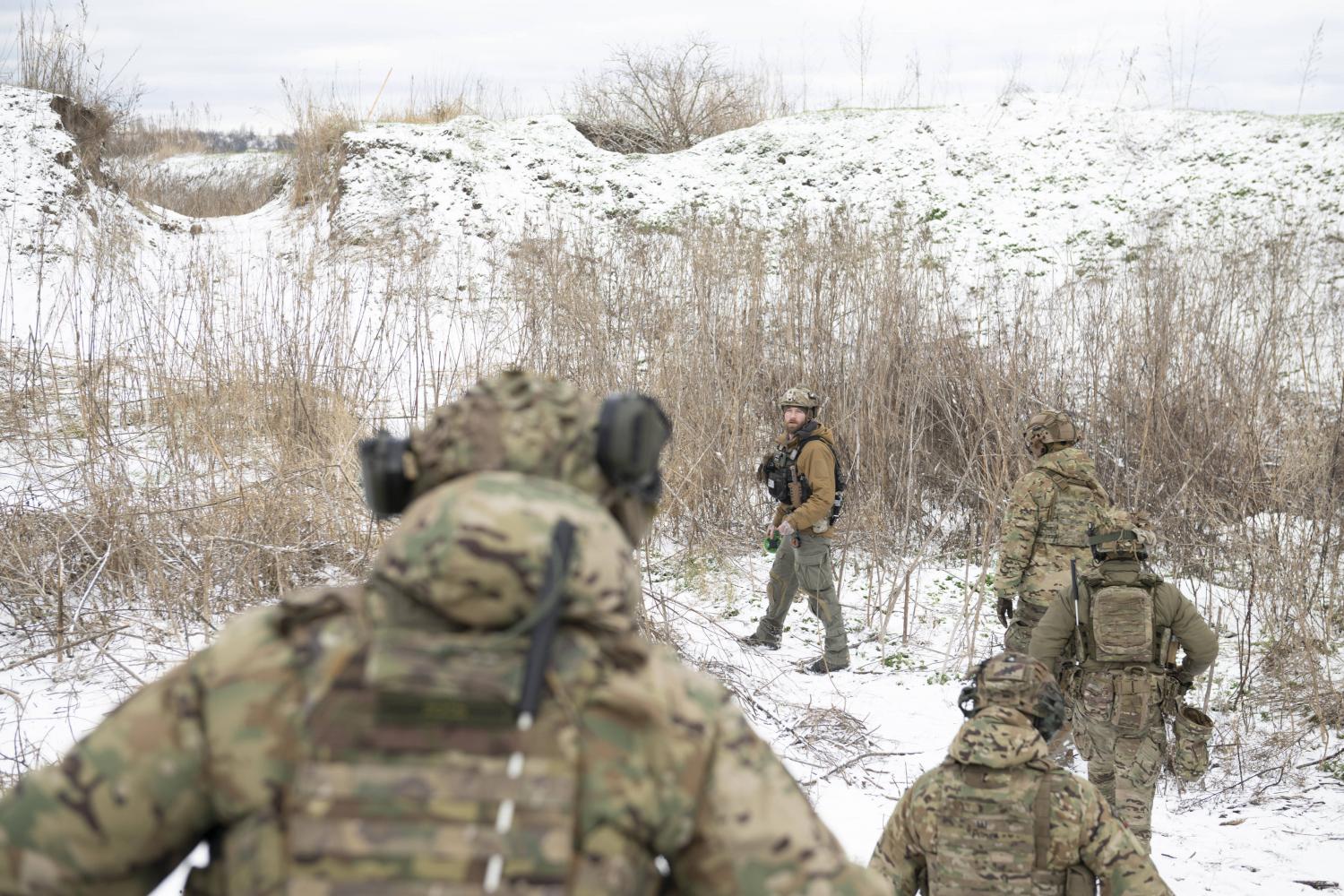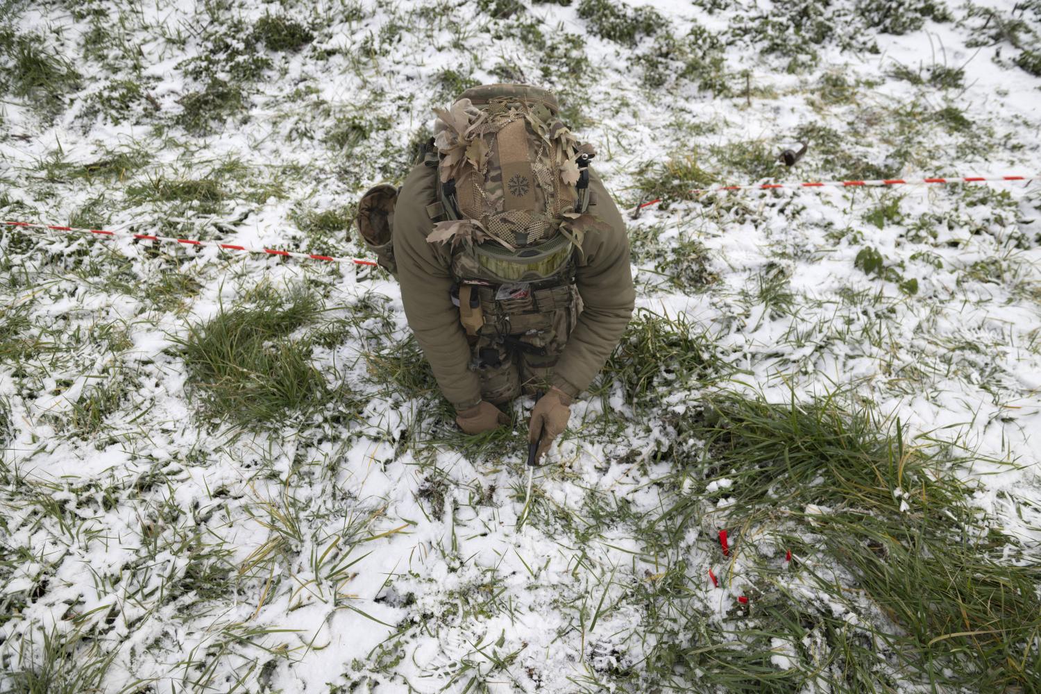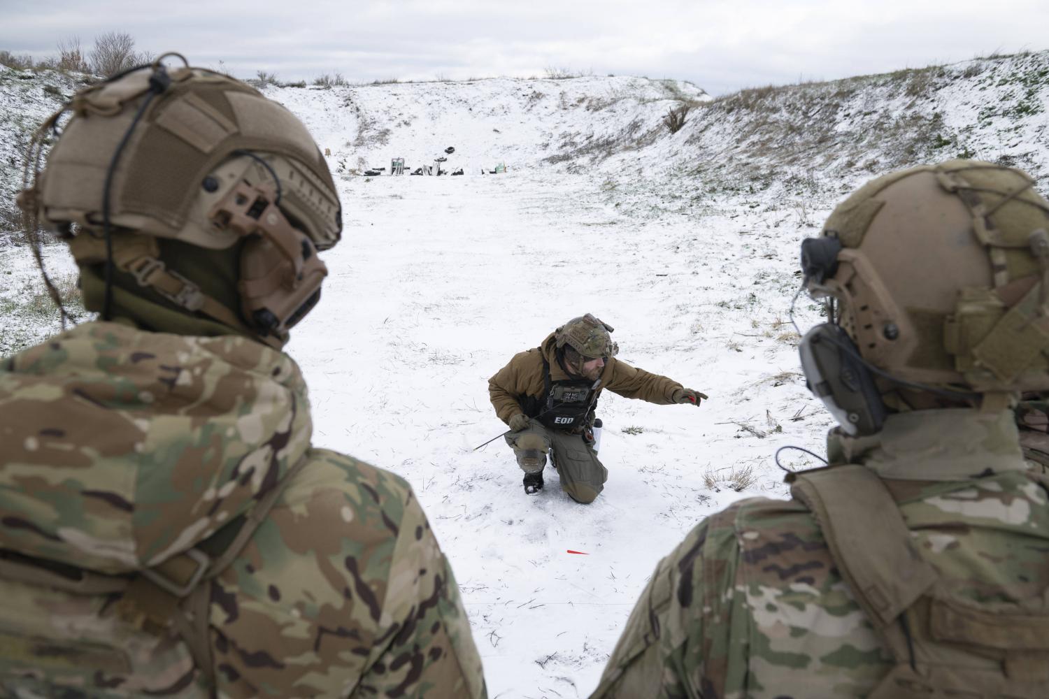 Government agencies preparing to go to the frontlines in Ukraine, receive on-site training by volunteers of Prevail Together, a not-for-profit organization that provides free Explosive Ordinance Disposal (EOD) training, landmine clearance and medical support to government agencies. Undisclosed location, Ukraine. Dec. 12, 2024.