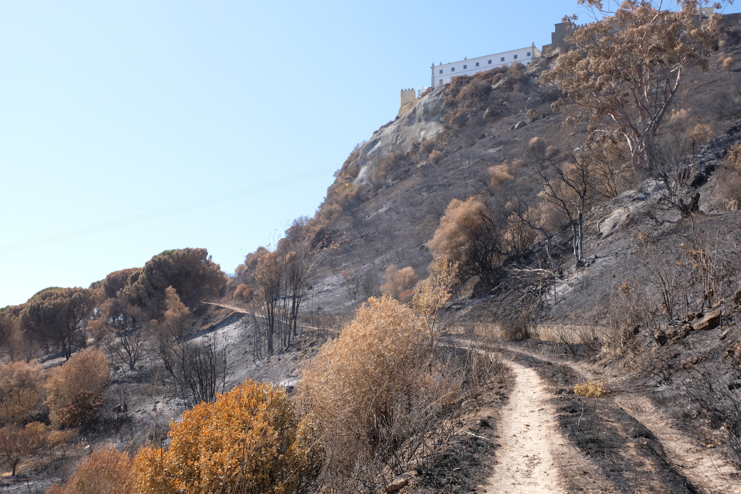 One year after the wildfire that destroyed 400 hectares of land around the town of Palmela in Portugal I revisited the area to see how nature was coping and how people were adapting to their changed environment. It was surprising and heartening to see how the natural vegetation has begun to recover despite the odds but chastening to witness the effect of continued high temperatures and lack of rain on that recovery. On top of this new questions and debates are to be had as to the best ways for people to aid this recovery. Amongst the sincere desires for trying to revive what was lost come questions about the extent of previous knowledge about what was there before, whether the old landscape can be regained given modern methods, and for whom and to what purpose is the new landscape for.