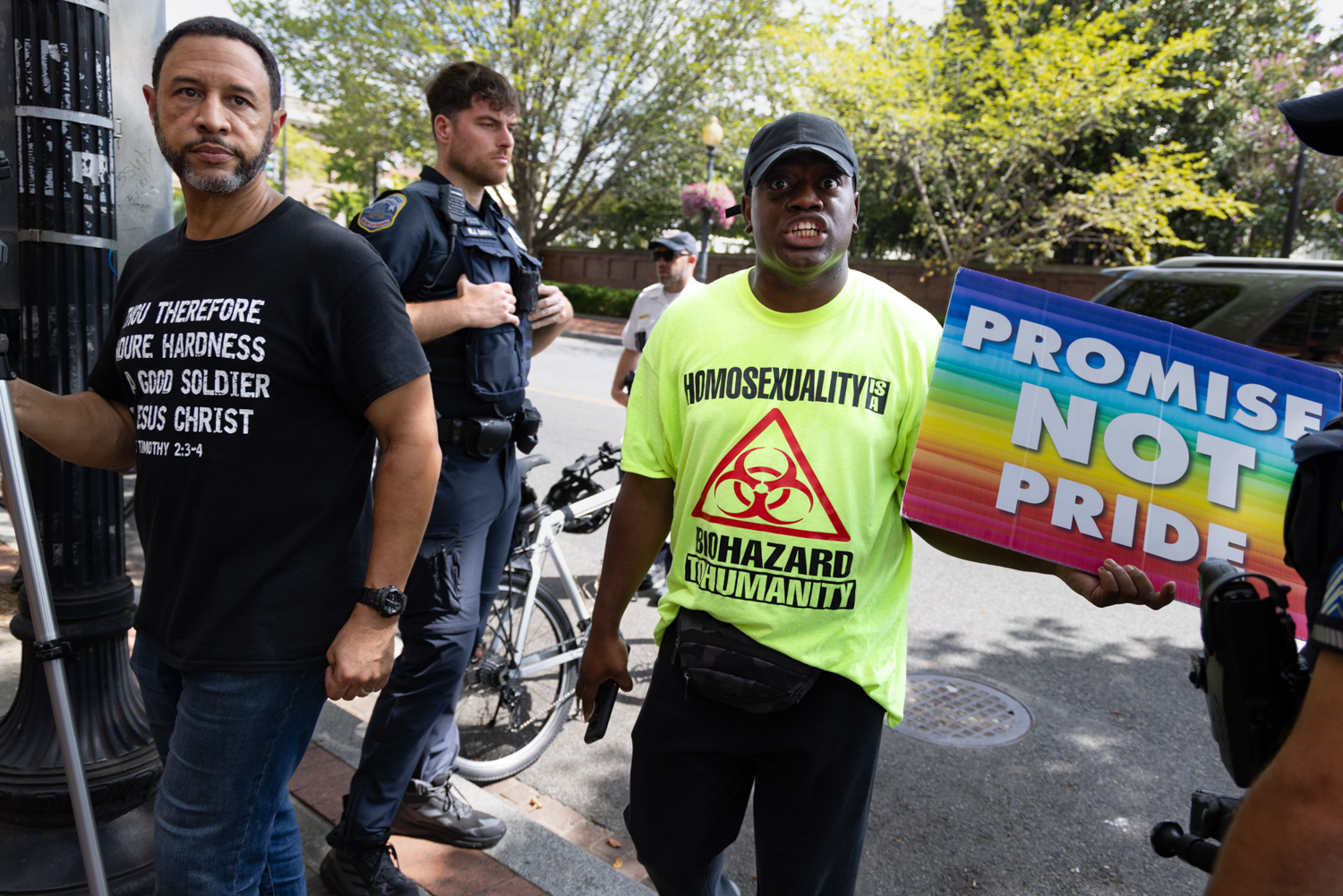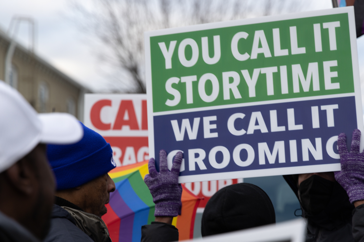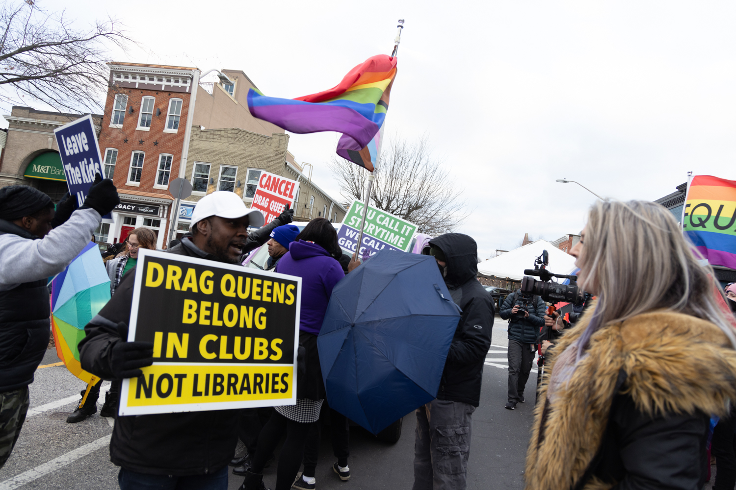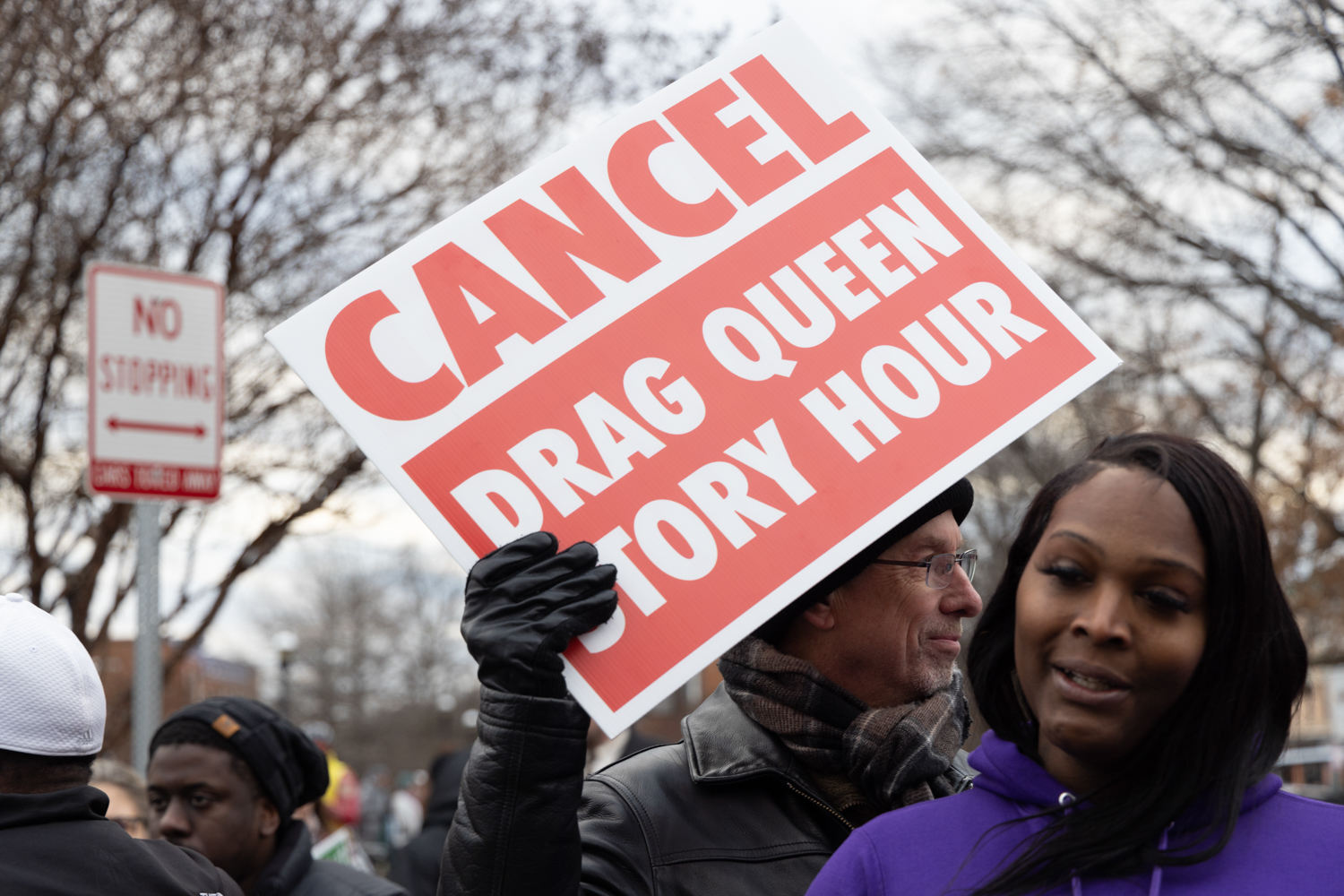 Outside of any story time venue you’ll find Christian right-wing nationalists, Evangelist priests and Proud Boys shaming and bullying families trying to enter. Some wear Go-Pro cameras strapped to their chests attempting to record the families entering. They yell vile, shameful lies about sexuality, homosexuality, transgenderism, drag queens and grooming children. Humorously, they claim that I, a documentary photographer, have child porn on my camera, but still Jesus loves me.