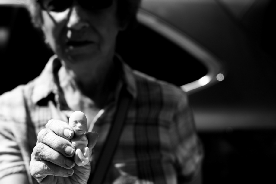 They arrive in a bus and then proudly strut down the street carrying gruesome, graphic signs featuring dead fetuses. They yell messages of shame and hate into the faces of approaching abortion patients coming to seek healthcare. At an almost deafening volume, they preach into microphones about murdering children and the sins of God. They are aggressive, forcefully trying to block entry to the narrow doorway that leads into this abortion clinic.