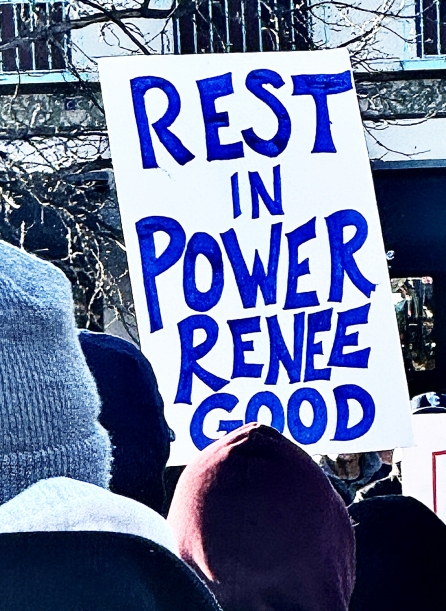 This exhibit is from the Kansas City Vigil (first part) and Protest March (second part) for Renee Good killed by ICE 1/7/26. Alex Pretti was killed by ICE 1/24/26. A screenshot and memorial card are added in remembrance of Alex.