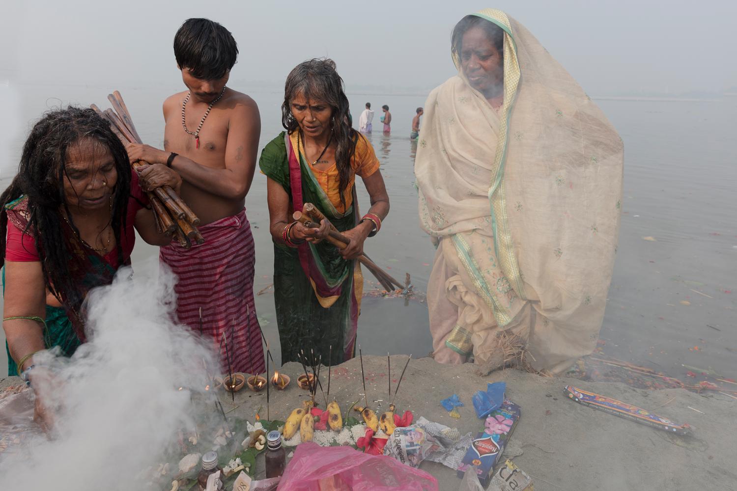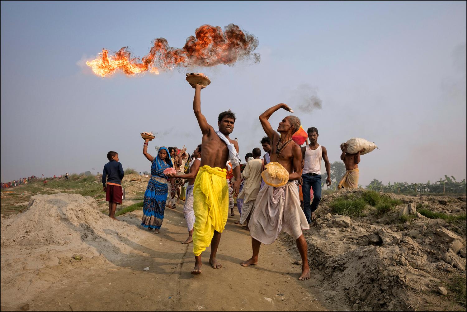 There are sideshows and entertainment fairs, which offers a wealth of photographic opportunities. I visited Sonepur in November 2015 and wanted to capture something of the festival activities centred on river banks as over several days thousands of pilgrims make offerings and take a ritual bath in the Gandak river. The holy men and their followers also set up camps where they pray and chant or meditate during this time of spiritual fervour.