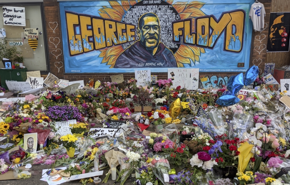 38th & Chicago, where George Floyd was killed, has become a memorial. George Floyd Square has been visited by thousands who come to pay their respects, to protest, to share their stories, to heal. Masses of flowers and tributes of all kinds flow into the site. A large group of community leaders and volunteers meet daily, organize events, and lovingly maintain and care for the site.