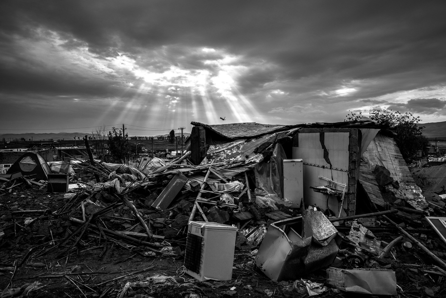 When the earth begins to shake, the walls crack, they can be heard collapsing, and things are heard falling. In a matter of seconds, hundreds of homes are ruthlessly destroyed, and a huge cloud of dust covers everything. In those quick yet horrific moments, an inexplicable fear grips the people, many are injured, and many dead. Families lose their loved-ones and face the biggest challenge of their lives: homelessness. Losing one's home and shelter can cause serious mental health problems, filling the victims with rage and fear. Hopelessness becomes an inseparable part of the daily life, and it is difficult for people to accept this shock, to move on from the earthquake's destructive effects, in order to fight the unexpected problems. Gradually and strangely, however, the survivors get on with their lives and begin to rebuild their surroundings, creating a shelter for themselves and the rest of their families using the debris.