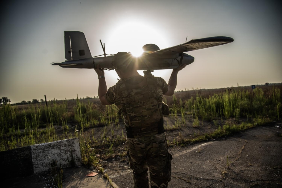 Ukrainian soldier prepare a drone to conduct an aerial survey