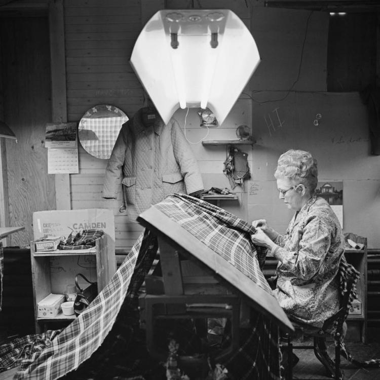 Industrial history has been a primary interest for Dunwell throughout his professional career. Between 1973 and 1977, he photographed inside and around numerous textile mills in New England. Combined with a rich illustrated historical narrative, this work was published as "The Run of the Mill," by David R. Godine Press in 1978. “With These Hands” is a collection of the textile worker portraits that formed the core of that mill documentation project.