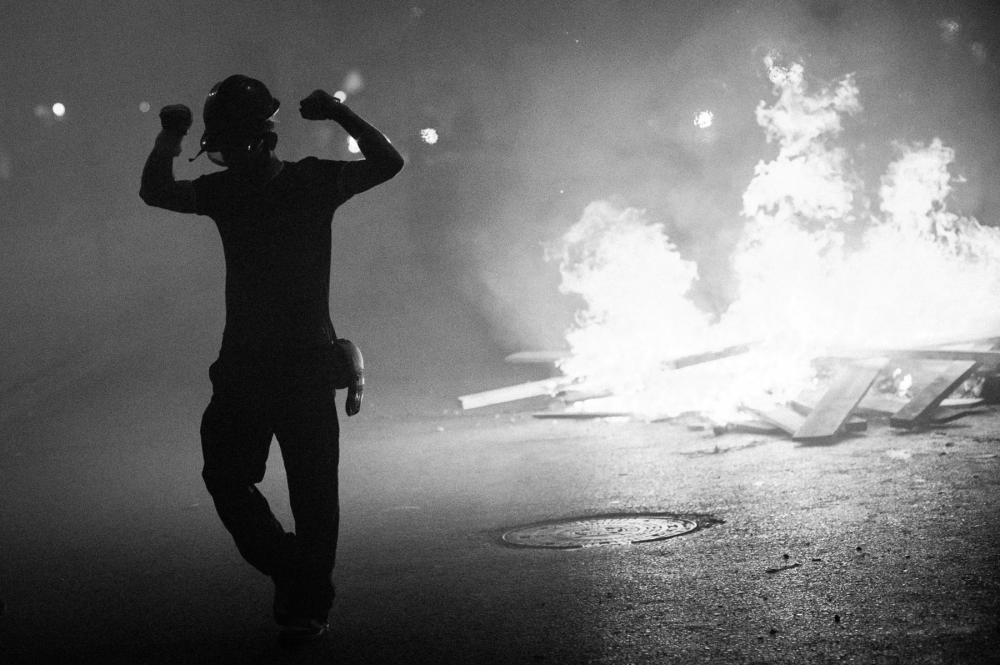 A protester turns his back to a burning barricade. Istanbul 16/06/2013